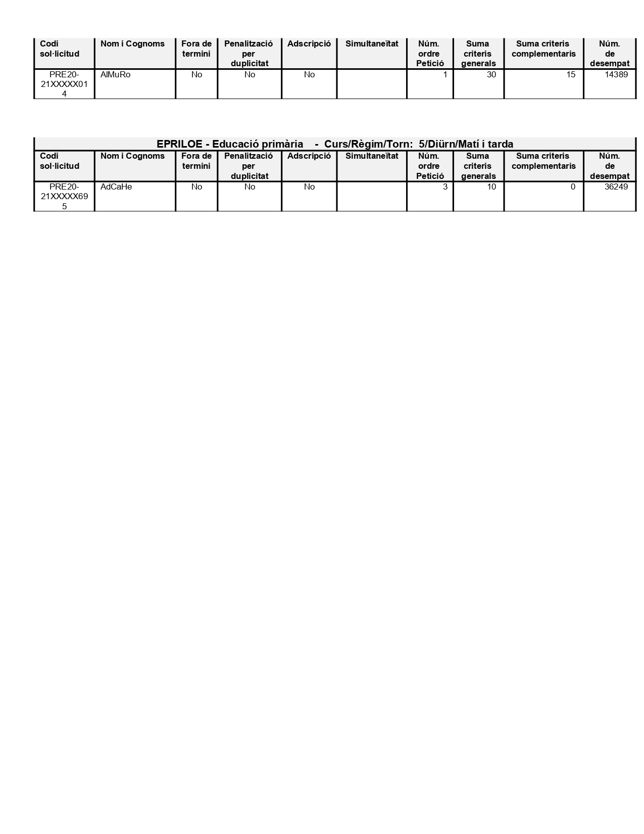 Aquesta és la llista definitiva d’adjudicats al nostre centre: