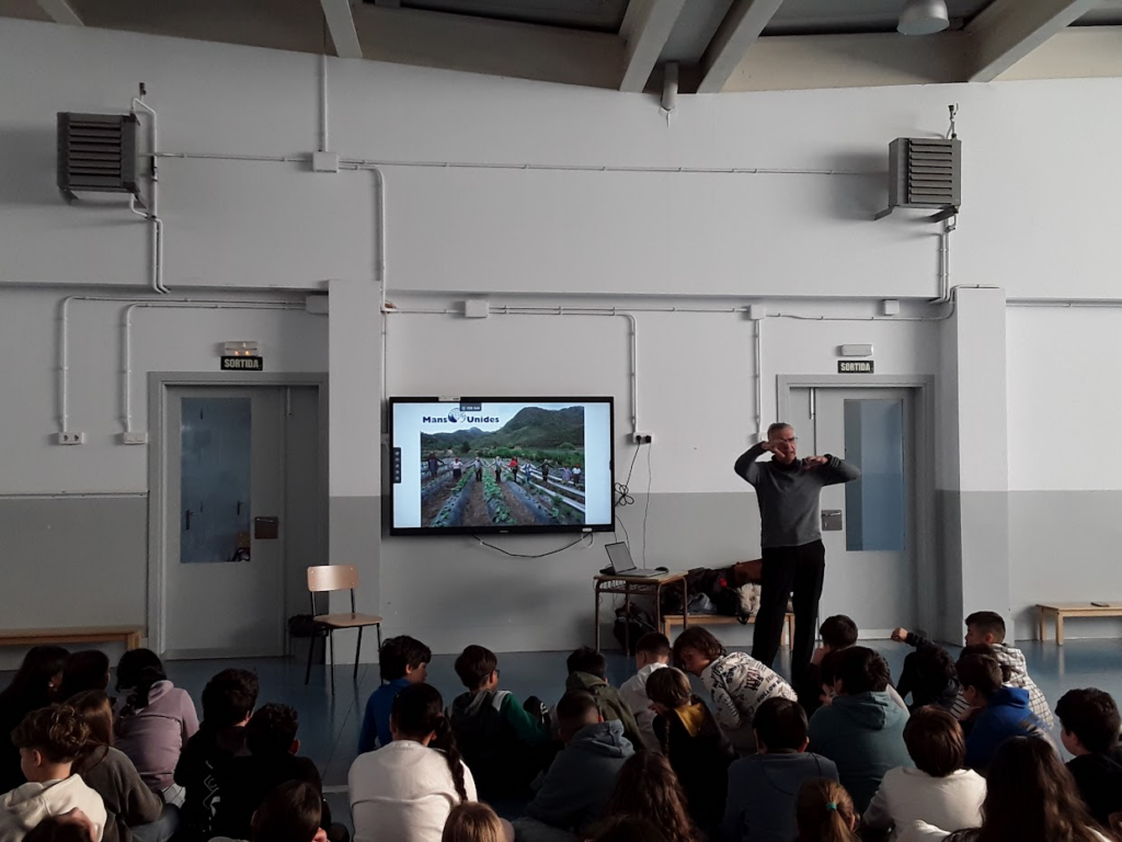 Avui, l’alumnat de cinquè i sisè ha rebut la visita de la Cristina Real, coordinadora de Mans Unides a Cerdanyola, i d’en Joan, també voluntari d’aquesta ONG. Ens han explicat com funciona i quina va estar la vivència d’en Joan quan va visitar Bolívia ara farà sis anys. Ha estat molt interessant entendre quins són els seus projectes i com els duen a terme.