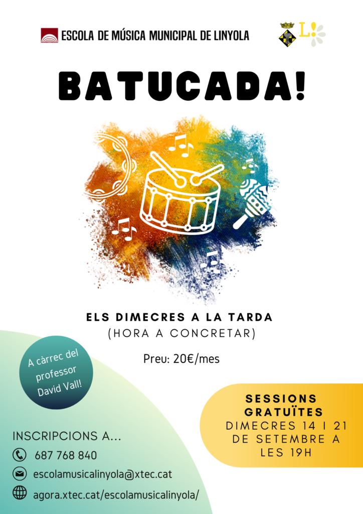 Si teniu molt de ritme i us va la marxa animeu-vos a venir a la Batucada dels dimecres a les 19h a l’Escola de Música amb el professor David Vall. Podeu venir amb amics i familiars ja que el grup està obert a totes les edats!