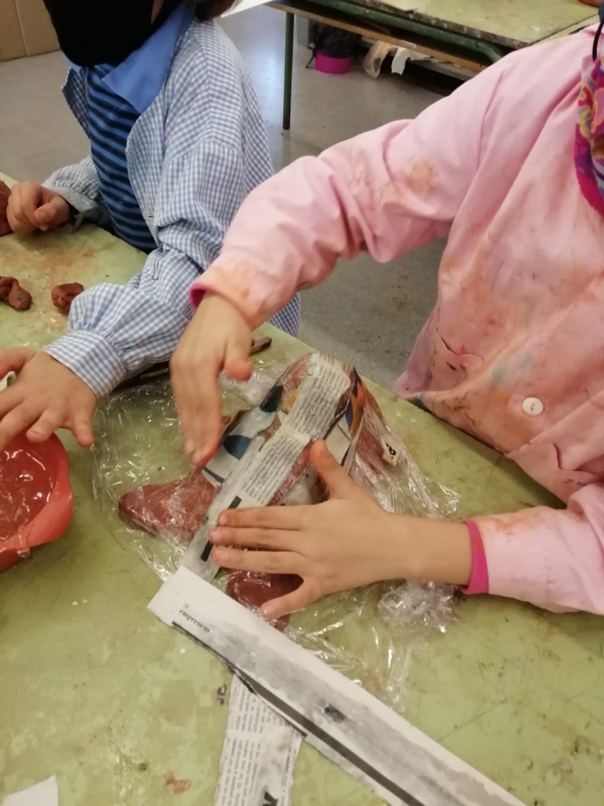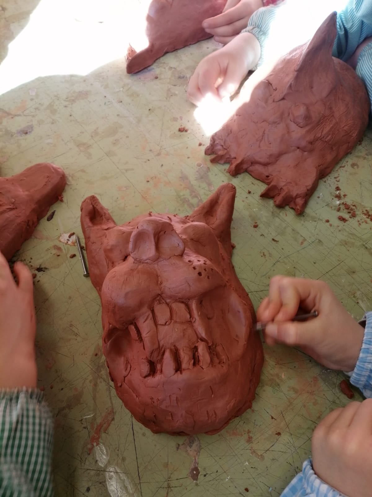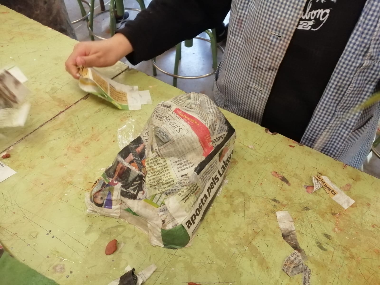 Ens estem fent les màscares de carnaval. Nosaltres hem escollit el tema dels animals. Primer hem dibuixat l’animal que volem ser. Després ens hem mesurat la cara i hem fet el motlle amb fang. Un cop acabat, l’hem cobert amb film transparent i hem posat moltes capes de paper de diari amb cola. Quan s’ha assecat les hem pintat. Ens estan quedant molt boniques!