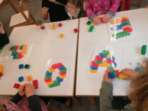 A Educació Infantil, ens organitzem per reflexionar sobre com fem matemàtiques, elaborant un mètode propi amb material creat per les mestres i acordant els objectius pedagògics. Fem reflexió continuada per avaluar i millorar el mètode i el procés.