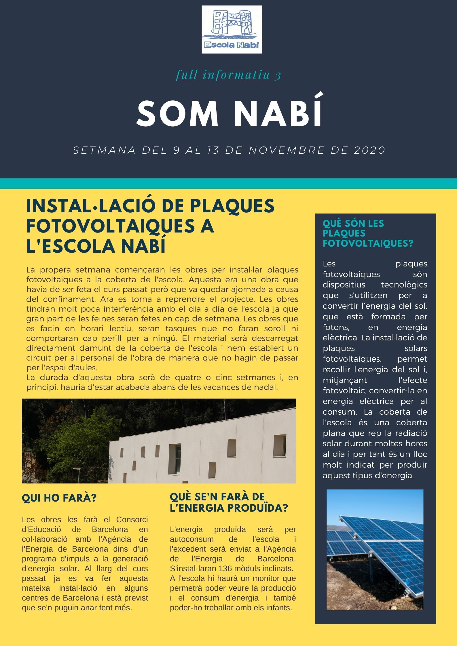 • Instal.lació de plaques fotovoltaiques a l’escola Nabí