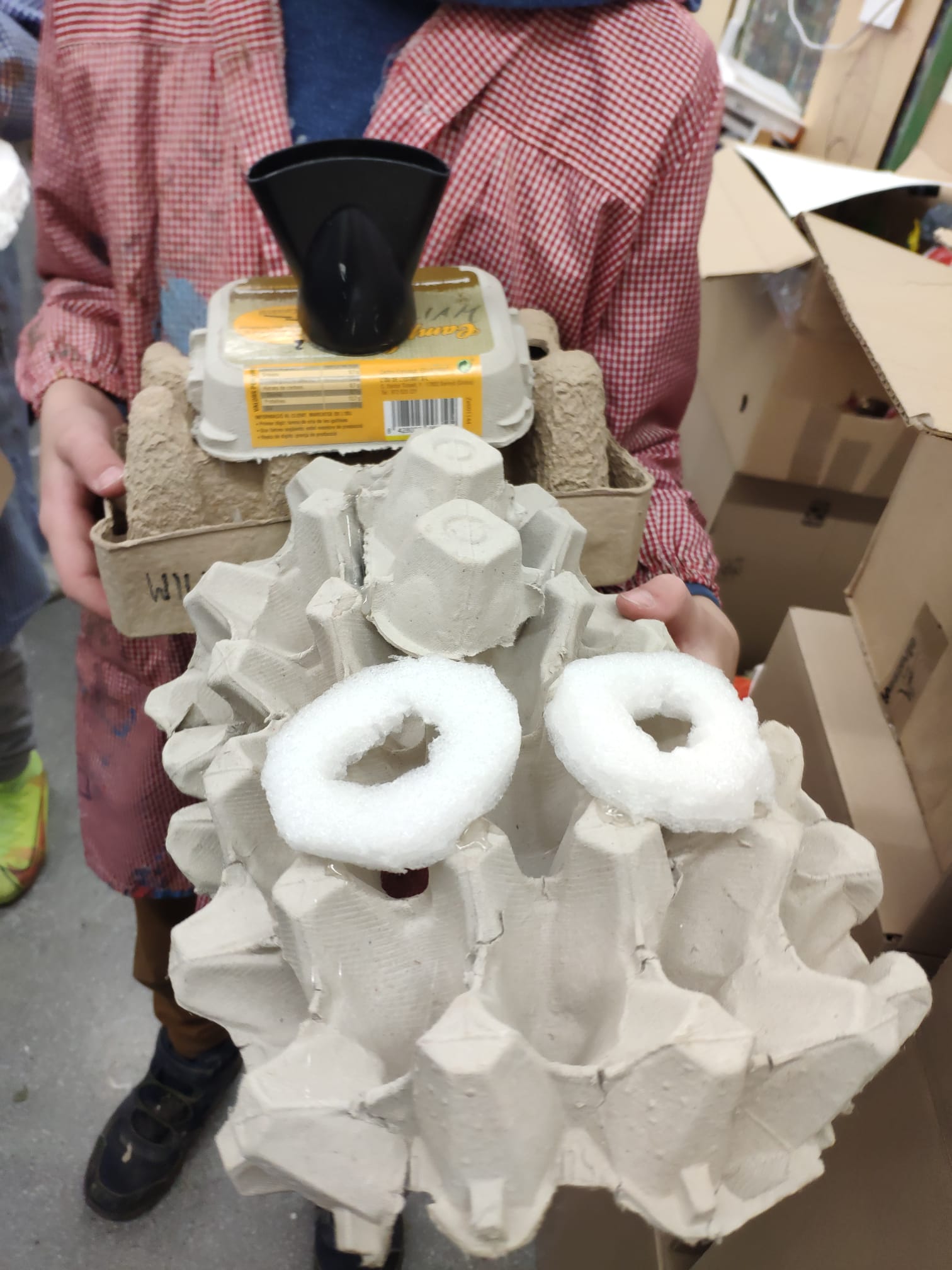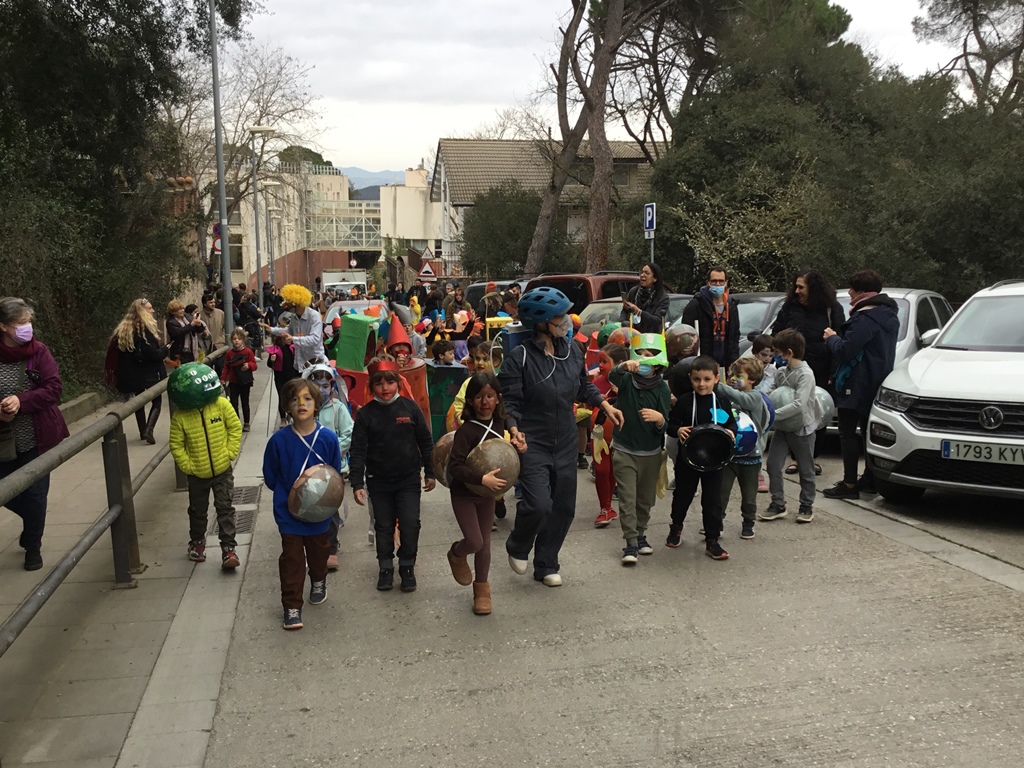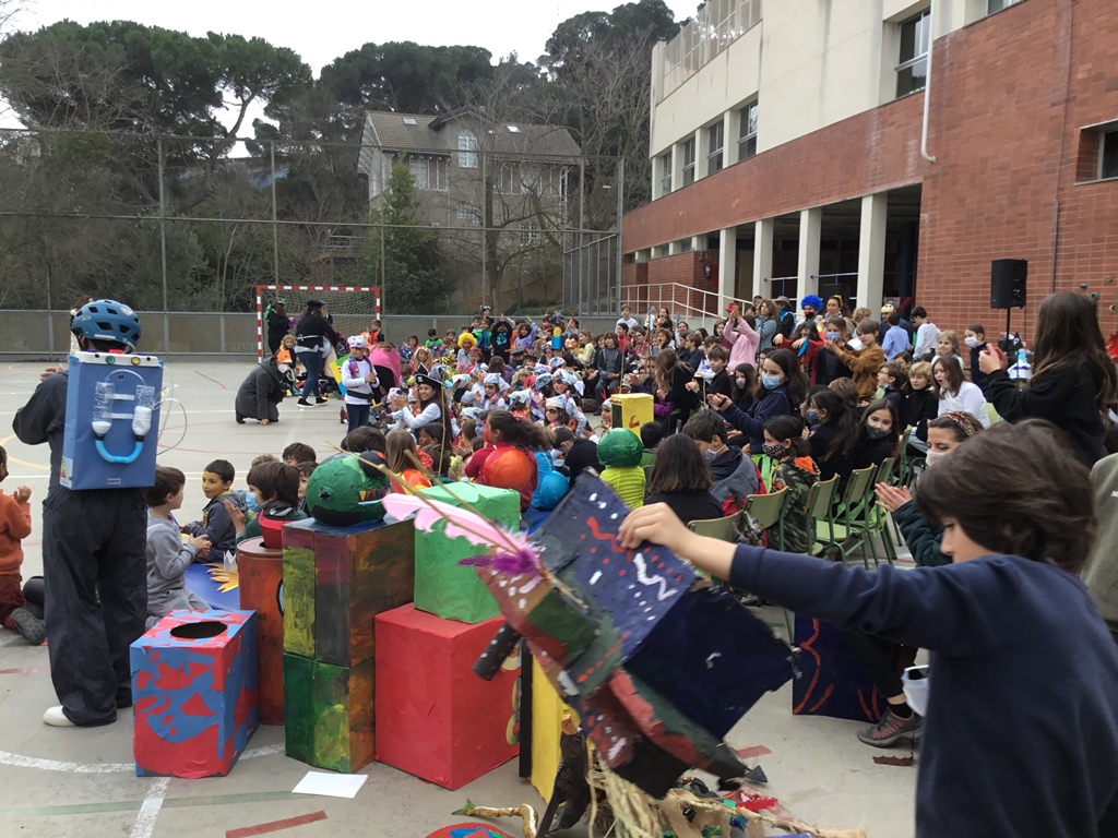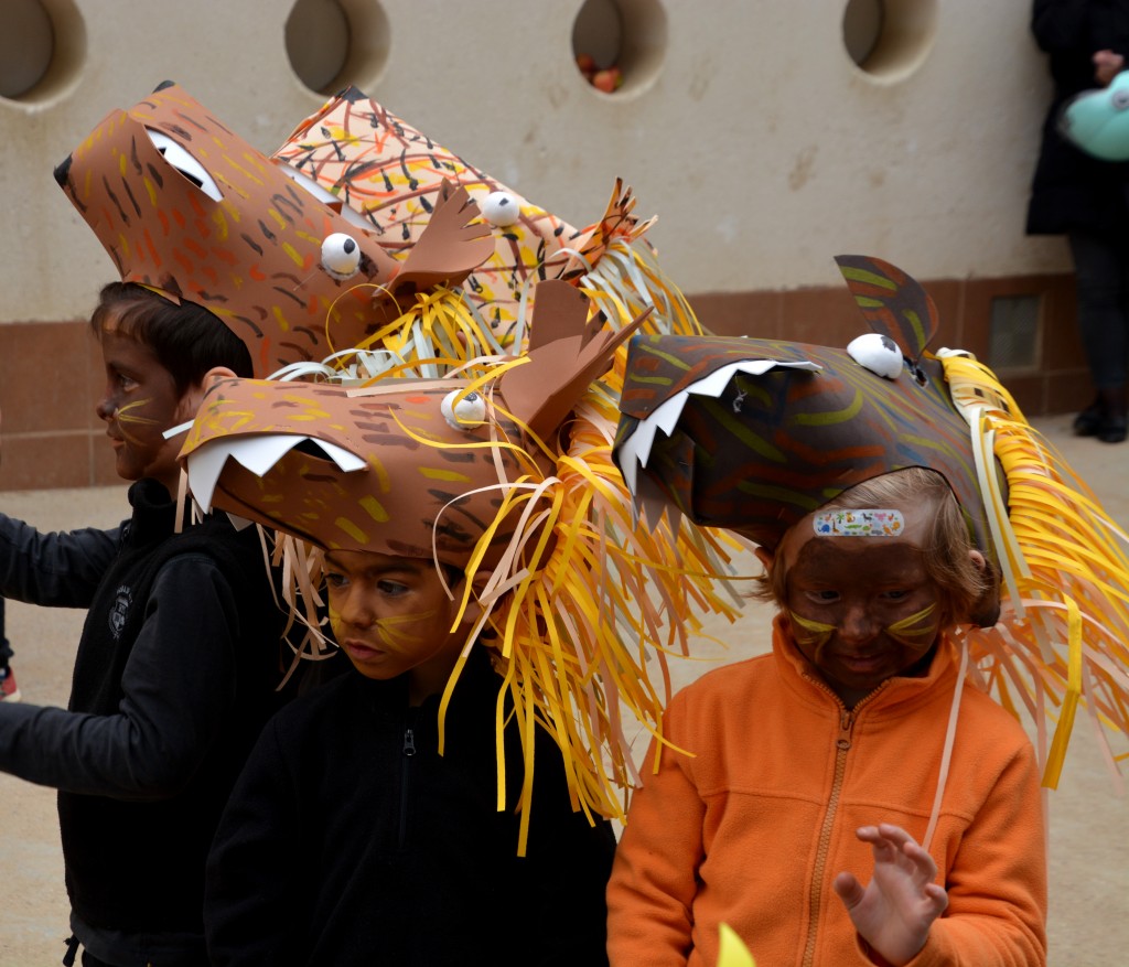 Per carnaval, primerament, cada grup tria un tema per fer les seves disfresses. Un cop acordat el tema, cada alumne tria el personatge que vol fer. Després, a la classe de plàstica, elaborem les disfresses fent servir diferents tècniques en funció de l’edat: màscares de guix, paper maixé, barrets, vestits i complements. Els resultats sempre són espectaculars!