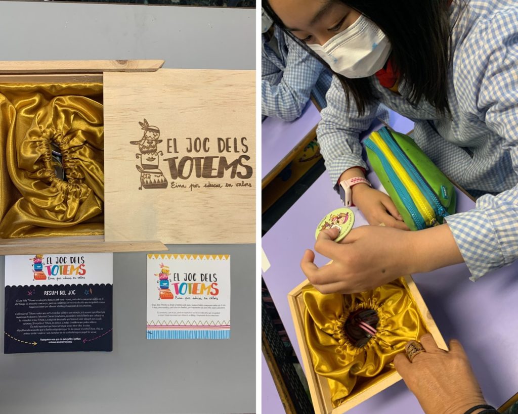A la classe de Valors hem jugat a “El joc dels Totems”. És una caixa màgica amb 12 fitxes o tòtems. Cada fitxa té un valor educatiu que els nens i nenes han de portar-lo a terme durant tota la setmana. Els valors que es treballen són : la diversitat, el civisme, el respecte, la