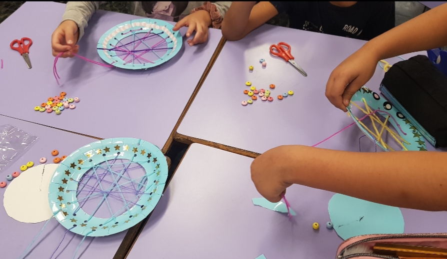 Les manualitats són un altre dels aspectes que es treballen a Primària dins dels espais d’aprenentatge. El que es pretén, és que els infants gaudeixin experimentant amb materials i tècniques diverses i han començat elaborant un atrapasomnis.