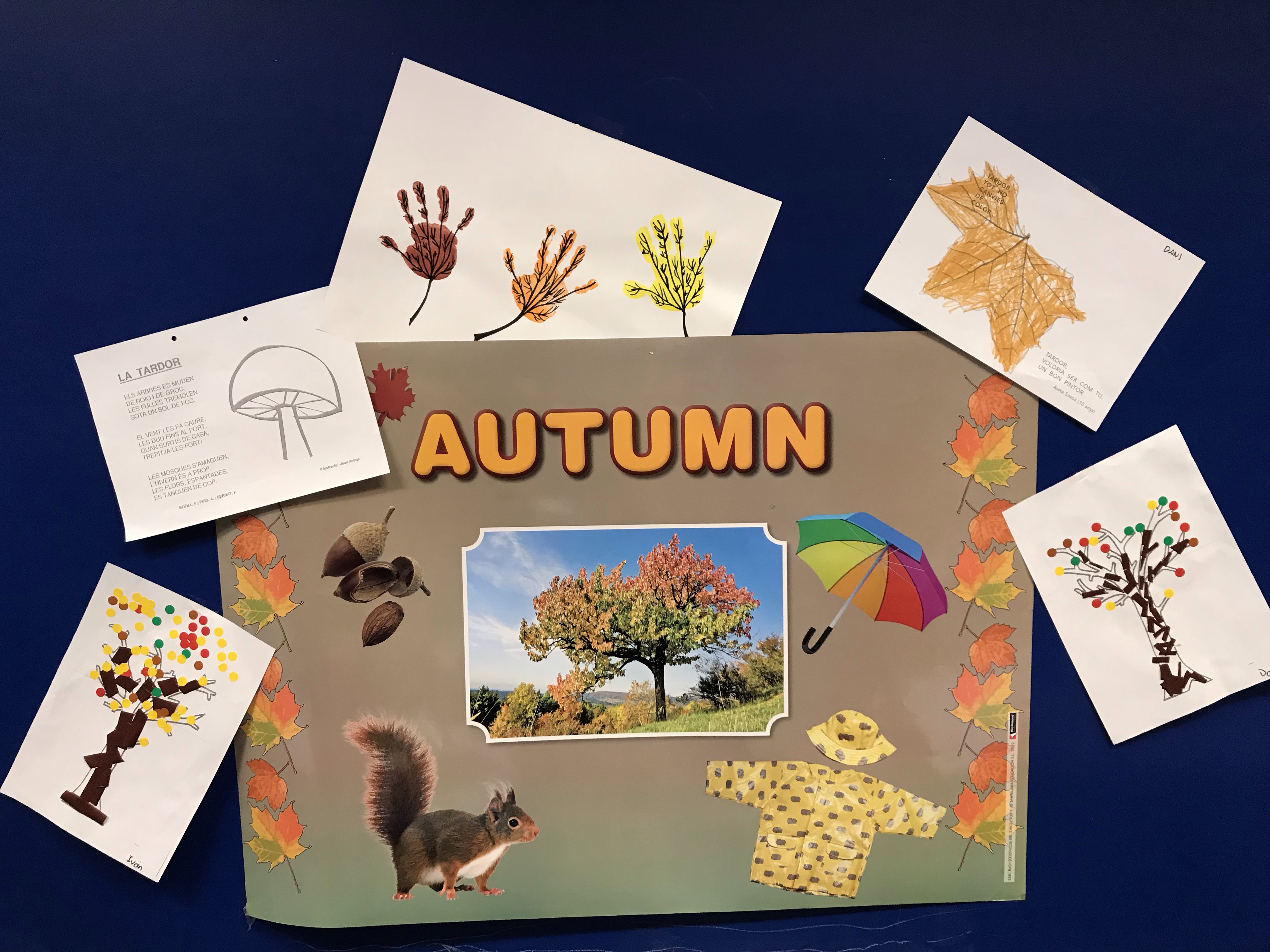 L’estiu ha acabat i la tardor ha començat!! Per això “Els Cargols” “Els Dofins” i “Els Elefants” estem fent una pila d’activitats: cançons, poemes, manualitats, pintura… Els colors de la tardor ja omplen els passadissos de l’escola!! Ens agrada treballar de manera transversal, és per això que a totes les àrees hem introduït el tema. D’una manera manipulativa, experimental i lúdica gaudim d’aquesta estació de l’any que ens porta castanyes, moniatos i carabasses. La Maria Castanyera aviat ens visitarà però no vindrà sola!! Fantasmes i monstres l’acompanyaran!! Estigueu atents!!!