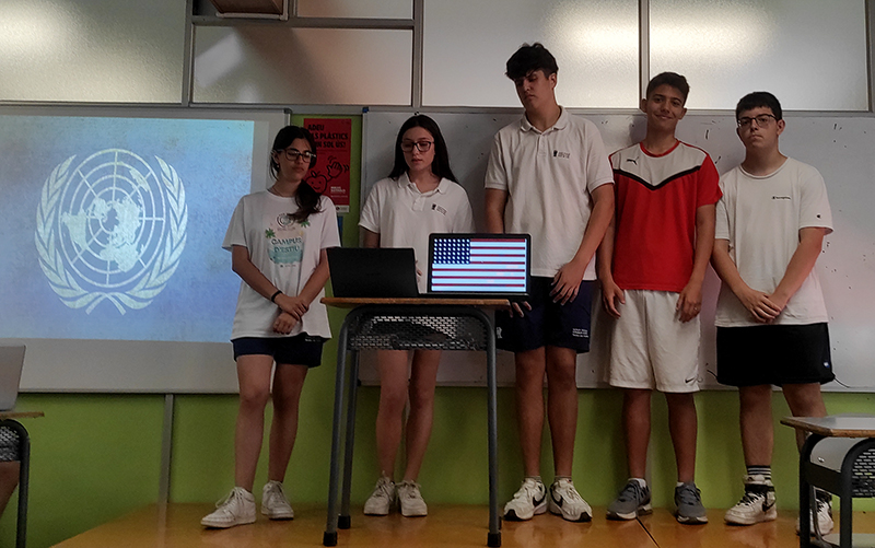 L’alumnat de 4t ESO ha fet aquestes darreres setmanes el projecte: “U.N. Model: Different Countries, same problem”. Aquest projecte forma part del contingut creat dins de la formació de Generació Plurilingüe, el programa d’innovació pedagògica que el nostre centre està implementant i que es troba en el seu segon any d’implementació. Aquest programa promou l’ús de la llengua anglesa més enllà de les hores dedicades específicament al seu estudi i normalitzar el seu ús i la consulta de fonts en aquest idioma.