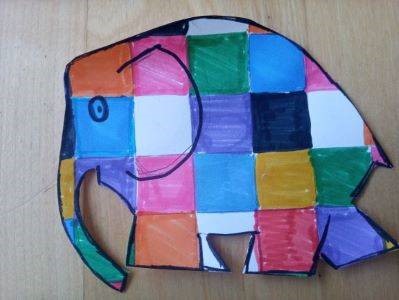 Qué, us ha agradat?? Quin elefant més bonic. No és color d’elefant, heu vist, és de toooots els colors!! M’encanta, perquè l’Elmer feia que tots els seus amics s’ho passessin d’allò més bé amb ell. Era capaç de fer la vida més divertida a aquells elefants grisos avorrits. Us proposo ara pintar el vostre elefant particular. Podeu triar pintar-lo a quadrats com l’Elmer o amb el disseny que volgueu (ho sento però no he pogut trobar cap foto d’Elmer amb enllaç que no tingués la lletra I al mig)