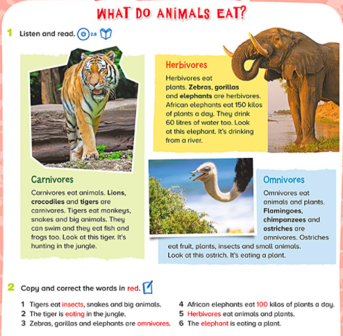 – Read the texts about carnivores, herbivores and omnivores.