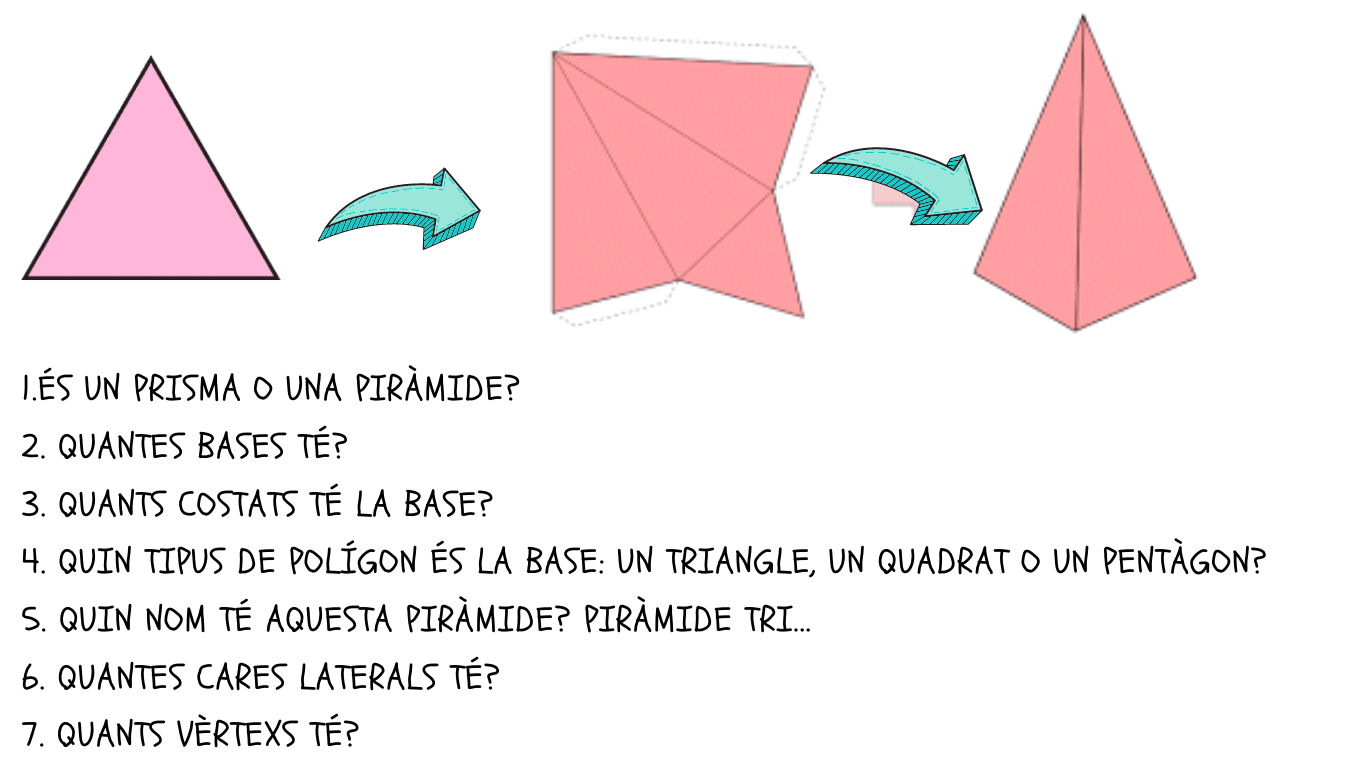 Us deixo unes plantilles per si voleu fer la piràmide i el prisma que trobareu a sota. És voluntari, però recomanable! Us serà més fàcil de veure i entendre les diferents parts per fer els exercicis!