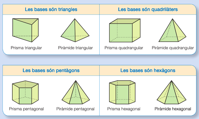 Us recomano que primer torneu a mirar el vídeo de l’altre dia per refrescar el que sabem sobre prismes i piràmides.