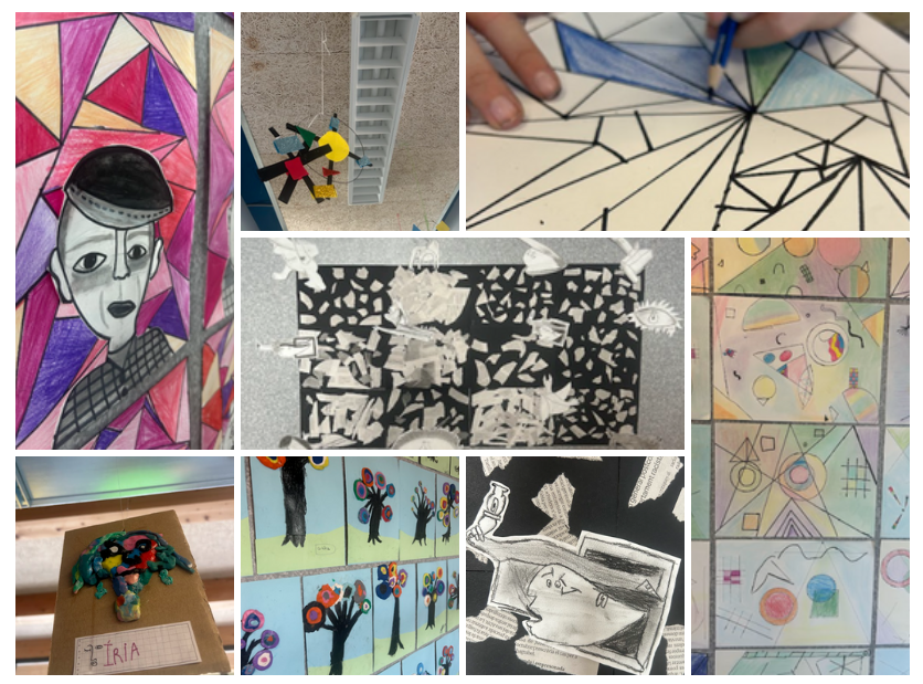 L’escola es vesteix de Kandinsky i Picasso amb les obres dels i les alumnes de cicle inicial i cicle superior. Aquestes han sigut fruit de les diferents sessions d’art d’aquesta primera volta de tallers artístics. Conèixer l’artista, la seva manera de pensar, fets de la seva vida personal, tendències artístiques…fins a arribar a posar-nos a la seva pell i elaborar obres genials com les que podeu veure en aquest àlbum de fotos.