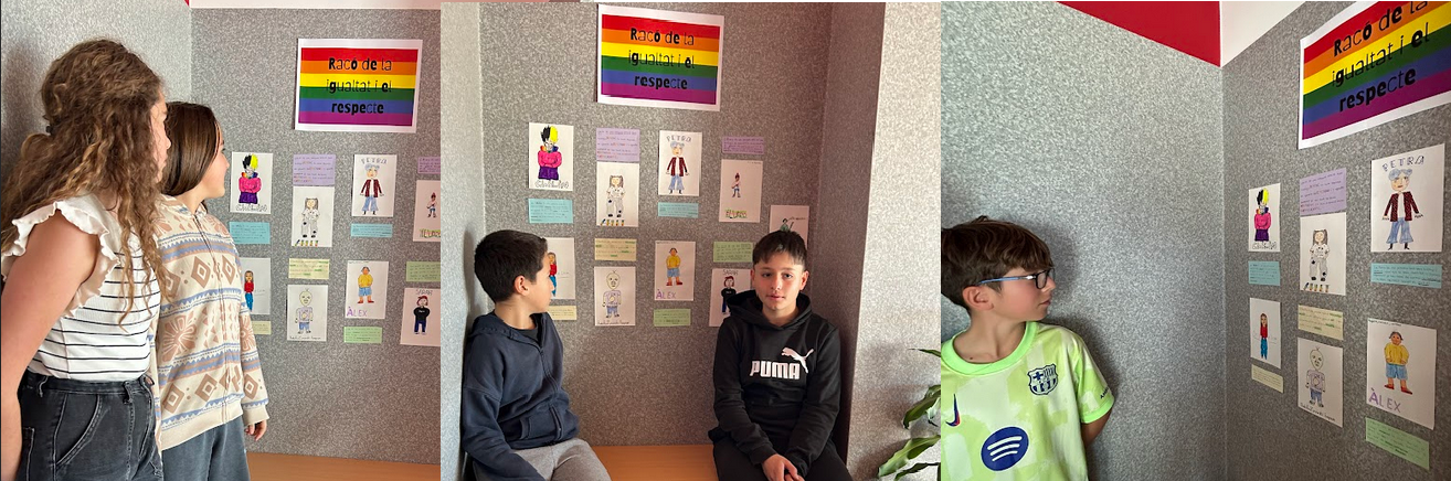 Els i les espiadimonis us presentem el racó de la igualtat i el respecte. Un espai que hem creat fruit d’una activitat que ens van plantejar en una de les xerrades-tallers de l’afectivitat i la sexualitat que estem duent a terme. Per equips hem creat una persona tenim en compte els aspectes treballats en les diferents sessions. Voleu conèixer la Petra, l’Àlex o la Cristina? Us els presentem en aquest raconet de l’escola. Clicant en aquest enllaç també trobareu algunes fotos que vam fer en el moment de la presentació.