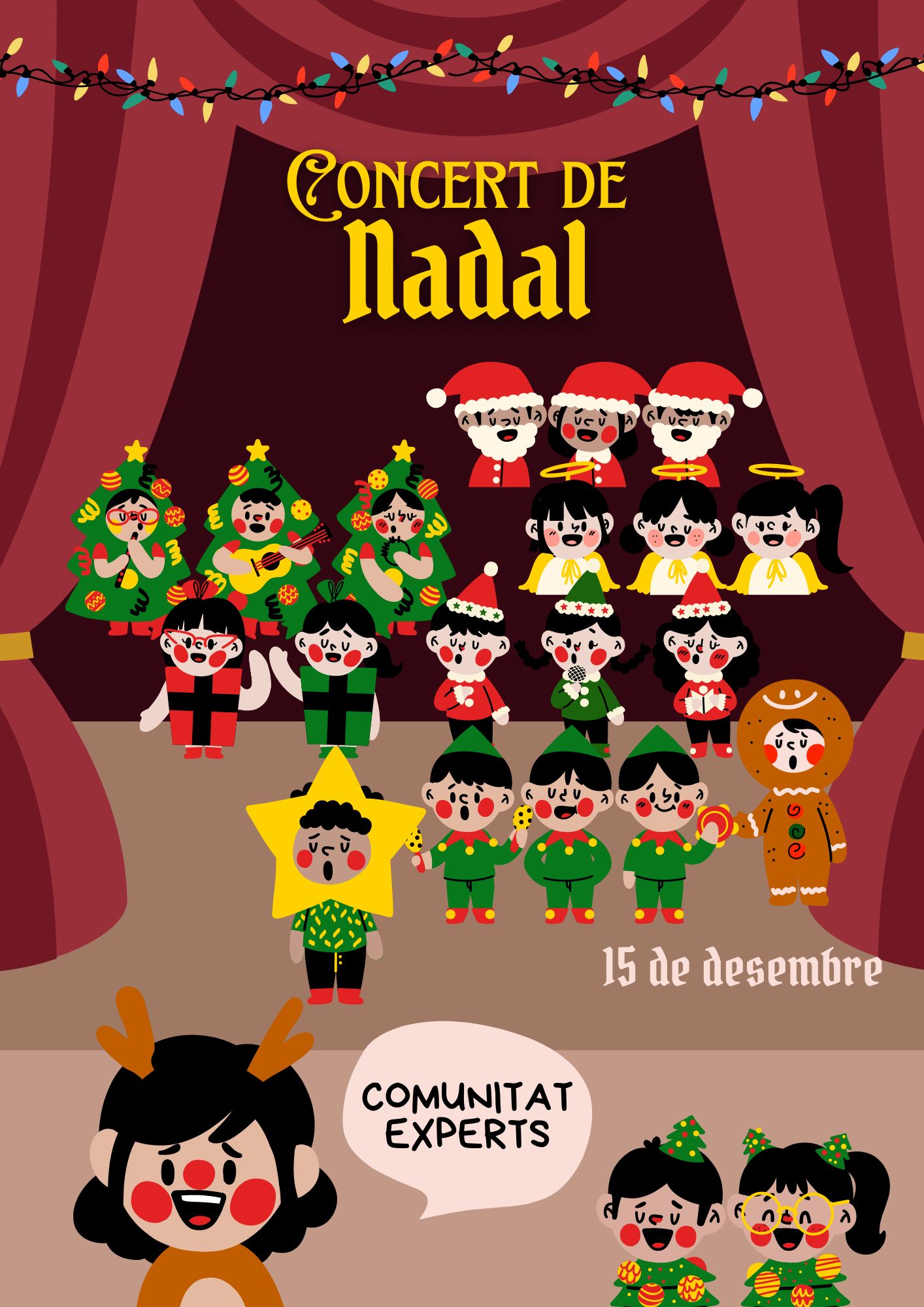 Concert de Nadal C. Mitjans i C. Experts Feu un comentari / Per Admin7 / 1 de gener de 2023 / General Portada / Activitats 6è, Activitats de 2n, Activitats de 3r, Activitats de 4t, Activitats de 5è, Comunitat d'Experts, Comunitat experts, Comunitat Mitjans, Concert de Nadal, Curs 2022-2023, Festes, Festes Escola Us volem convidar a veure l’actuació dels nostres petits i petites cantants… El concert va tenir lloc el 15 de desembre. Per veure totes les actuacions cliqueu al títol i després a la imatge corresponent.