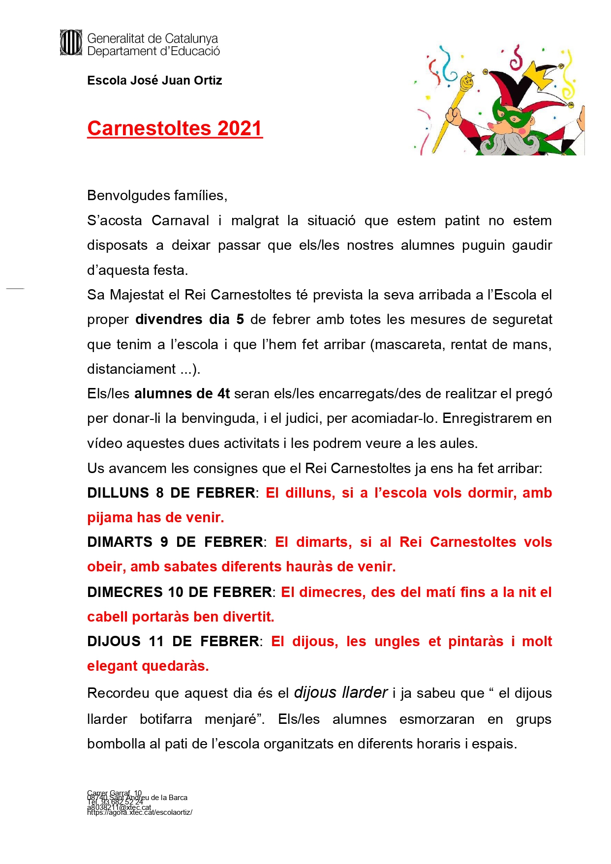 Consignes del Rei Carnestoltes 2021 Feu un comentari / Per Admin7 / 5 de febrer de 2021 / General Portada / Carnestoltes, Curs 2020-2021, Festes, Festes Escola (Si voleu veure la imatge ampliada cliqueu al títol i després cliqueu a sobre)