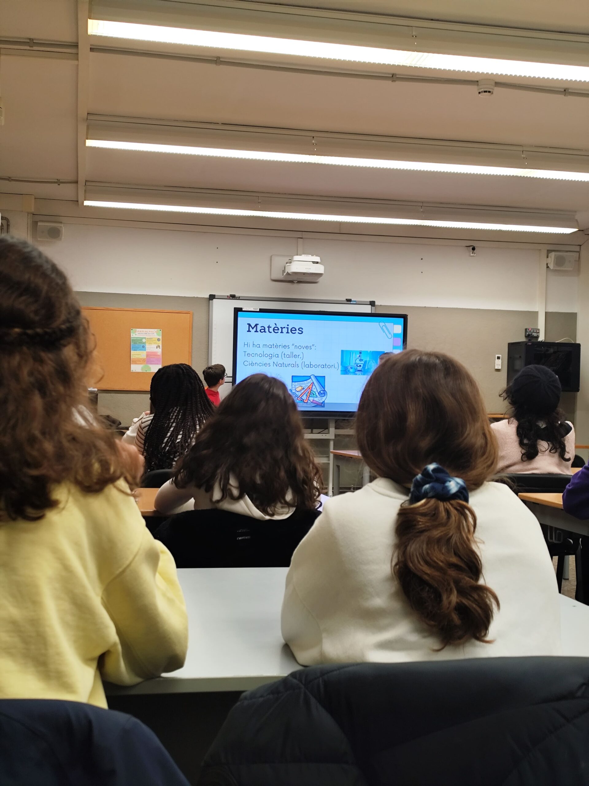 Durant la visita, l’alumnat de primer i l’equip directiu els van explicar el funcionament de l’institut: els horaris, les diferents matèries, els espais (aules específiques, laboratoris, pati…) i alguns dels projectes que s’hi duen a terme. També van poder resoldre dubtes i fer preguntes sobre els canvis que implica passar de primària a secundària.
