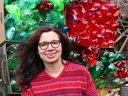 Per fer les seves creacions ha utilitzat moltíssimes ampolles reciclades ajudant a la neteja de platges entre d’altres.