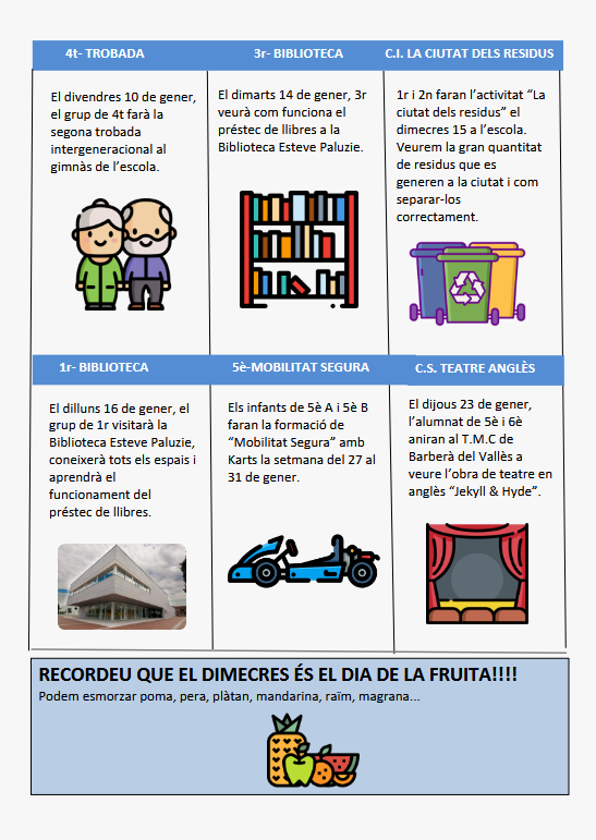 Torna la fruita a l’escola aquest mes de gener, seguint amb el Pla de consum de fruita a les escoles (més info aquí).