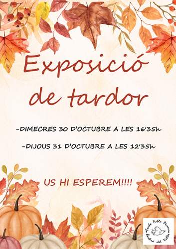 Obrirem les portes de l’escola el dimecres 30 d’octubre a les 16:35 h i el dijous 31 d’octubre a les 12:35 h per tal que pugueu entrar a veure l’exposició que estem preparant.