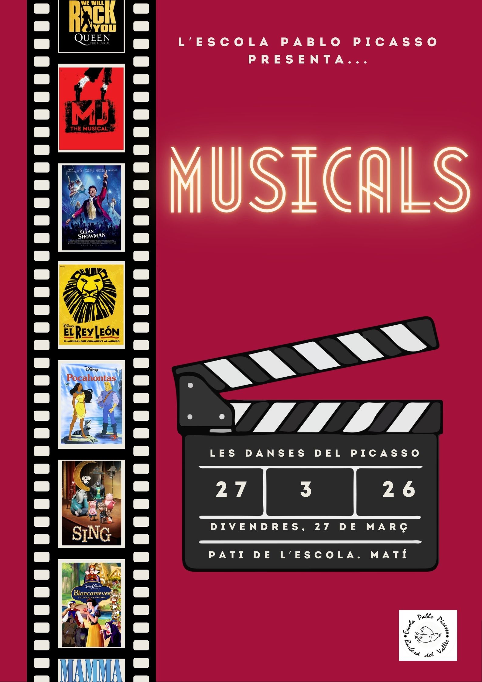 Recordeu que el proper divendres 27 de març a partir de les 9’30h esteu convidades a l’espectacle “Musicals”. Un festival de danses a l’estil Broadway que no us podeu perdre.
