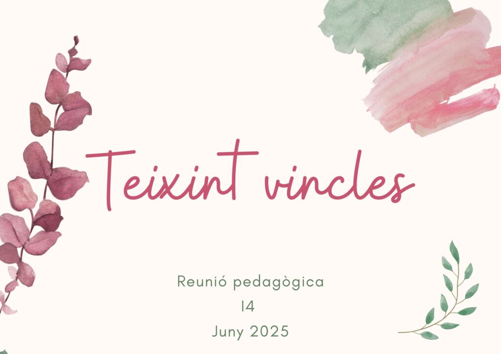 El passat dimecres 14 de maig van tenir lloc les reunions de final de curs dels dos grups de quatre anys. Al llarg d’aquest curs, s’han anat teixint vivències compartides, mirades, gestos de complicitat. Els infants de quatre anys han anat construint nous vincles entre ells i amb les mestres, creant una xarxa rica de relacions que els ha ajudat a créixer, a sentir-se part del grup i a viure amb intensitat cada moment del dia a dia. A continuació trobareu els enllaços a les presentacions que recullen l’evolució del grup així com les orles de cada grup. Esperem que gaudiu d’aquest recull.