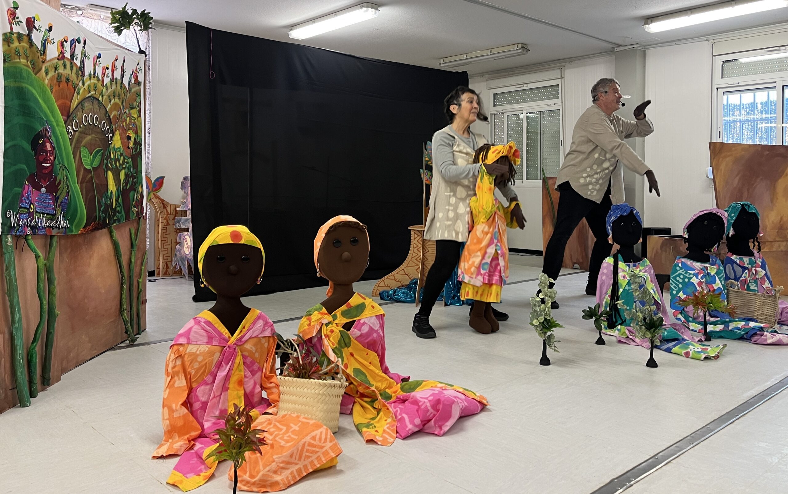Aquesta obra, protagonitzada per la Wangari, mostra com les persones, els animals i la natura poden conviure en harmonia. Per poder fer-ho, s’ha de cuidar de l’entorn i respectar a tots els éssers vius. Degut a l’avarícia dels humans, es posa en perill aquest equilibri i la Wangari i les dones dels pobles decideixen plantar milers d’arbres per tornar a l’harmonia anterior. Una història basada en fets reals que transmet a l’alumnat la importància de cuidar de la natura i els éssers que l’habitem.