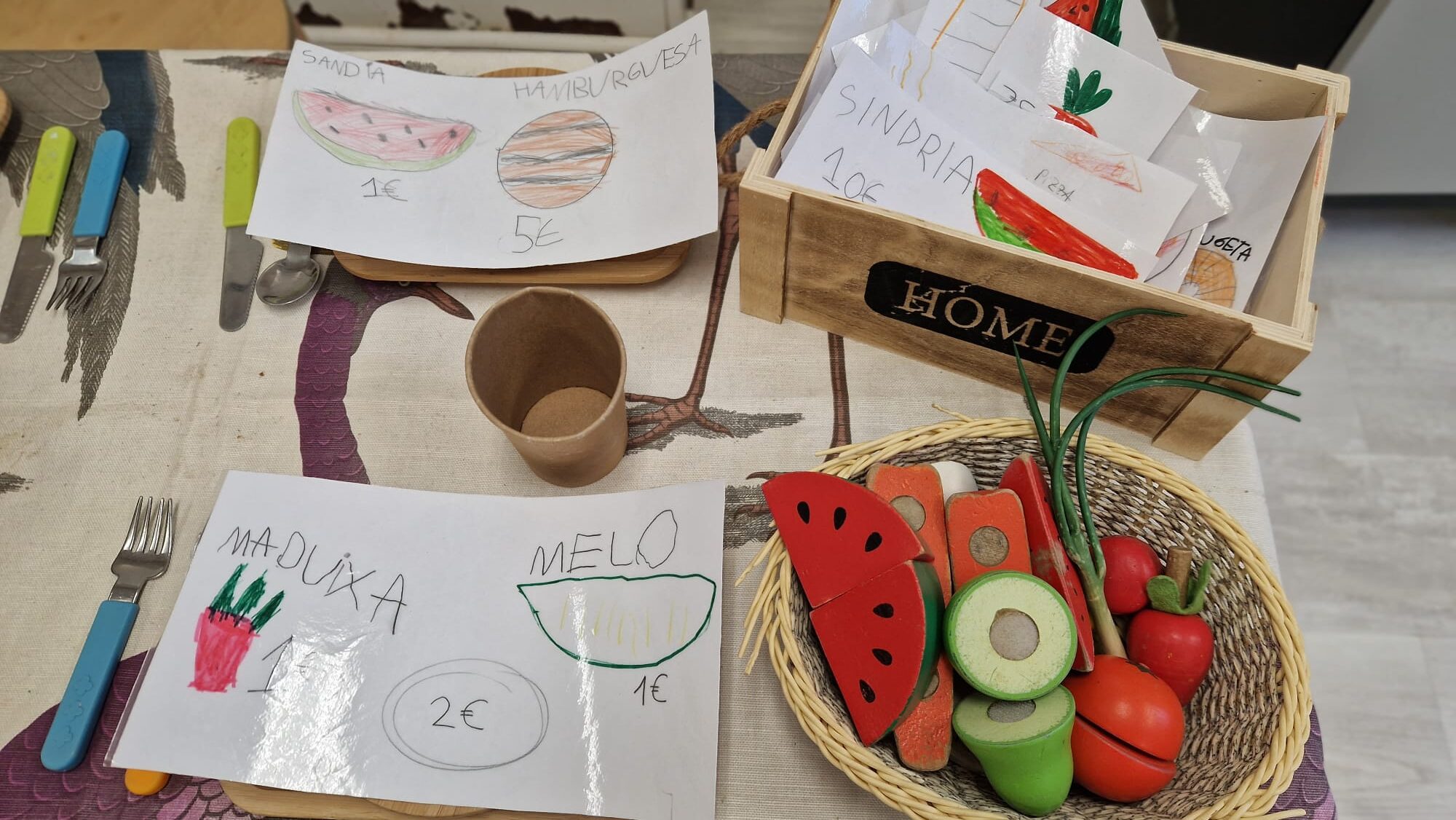 En l’aula de 5 anys l’espai de joc simbòlic esdevé un entorn ric i estimulant on desenvolupen la imaginació, la creativitat… i, a més, és un mitjà per l’evolució del llenguatge i l’ampliació de la competència lingüística. De manera vivencial i pràctica, es poden introduir els llenguatges escrit i matemàtic a partir de materials que incentiven aquests llenguatges, com una llibreta o una caixa registradora. D’aquesta manera practiquen també l’escriptura, el comptatge, les sumes… Escenaris que permeten als nens i nenes representar i interpretar rols, situacions i contextos variats. En aquest cas, a partir dels seus interessos han transformat aquest espai en un restaurant i un hospital.