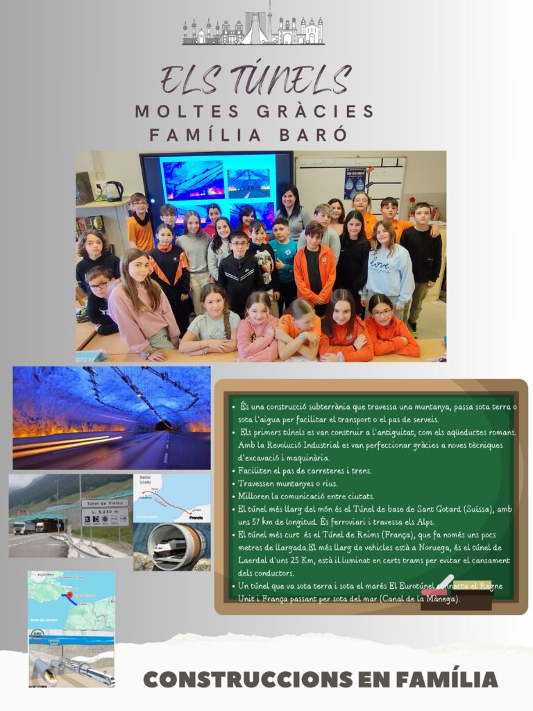 La Lia i la seva mare ens van presentar una construcció que ha estat molt important per a la història de la humanitat perquè ha permès superar obstacles naturals com muntanyes, rius o zones urbanes molt poblades. Gràcies als túnels, s’han pogut construir carreteres, ferrocarrils i canals que faciliten el transport de persones i mercaderies.