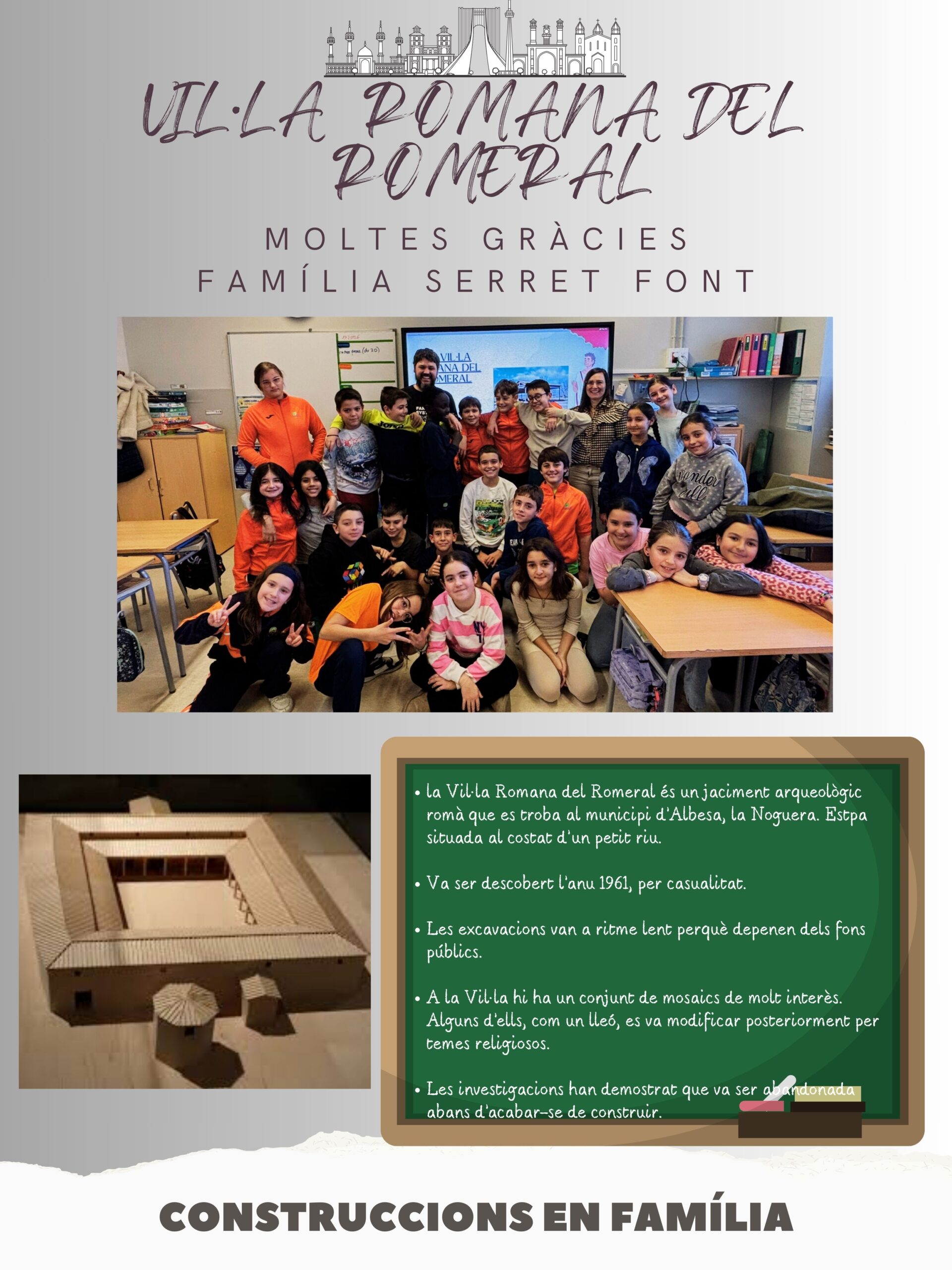 La família del Llibert ens ha apropat a la història a través de la Vil·la Romana del Romeral, situada al municipi d’Albesa, a la Noguera. Tot i que durant molt temps va estar amagada sota terra, l’any 1961, i per casualitat, es va descobrir i, des de llavors, és un jaciment arqueològic de gran valor, tot i que l’excavació avança molt lentament a causa de la manca de recursos econòmics.