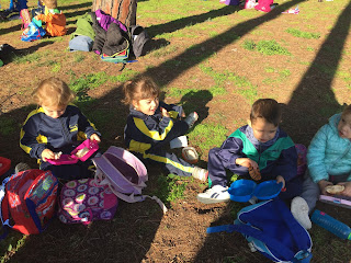 I per fi arriba el dia de la castanyada, al matí hem anat caminant fins al bosquet de la Pineda, per nosaltres una gran ruta a peu! Allà hem esmorzat, hem buscat fruits de la tardor i hem jugat. Mireu que bé ens ho hem passat!!!