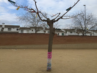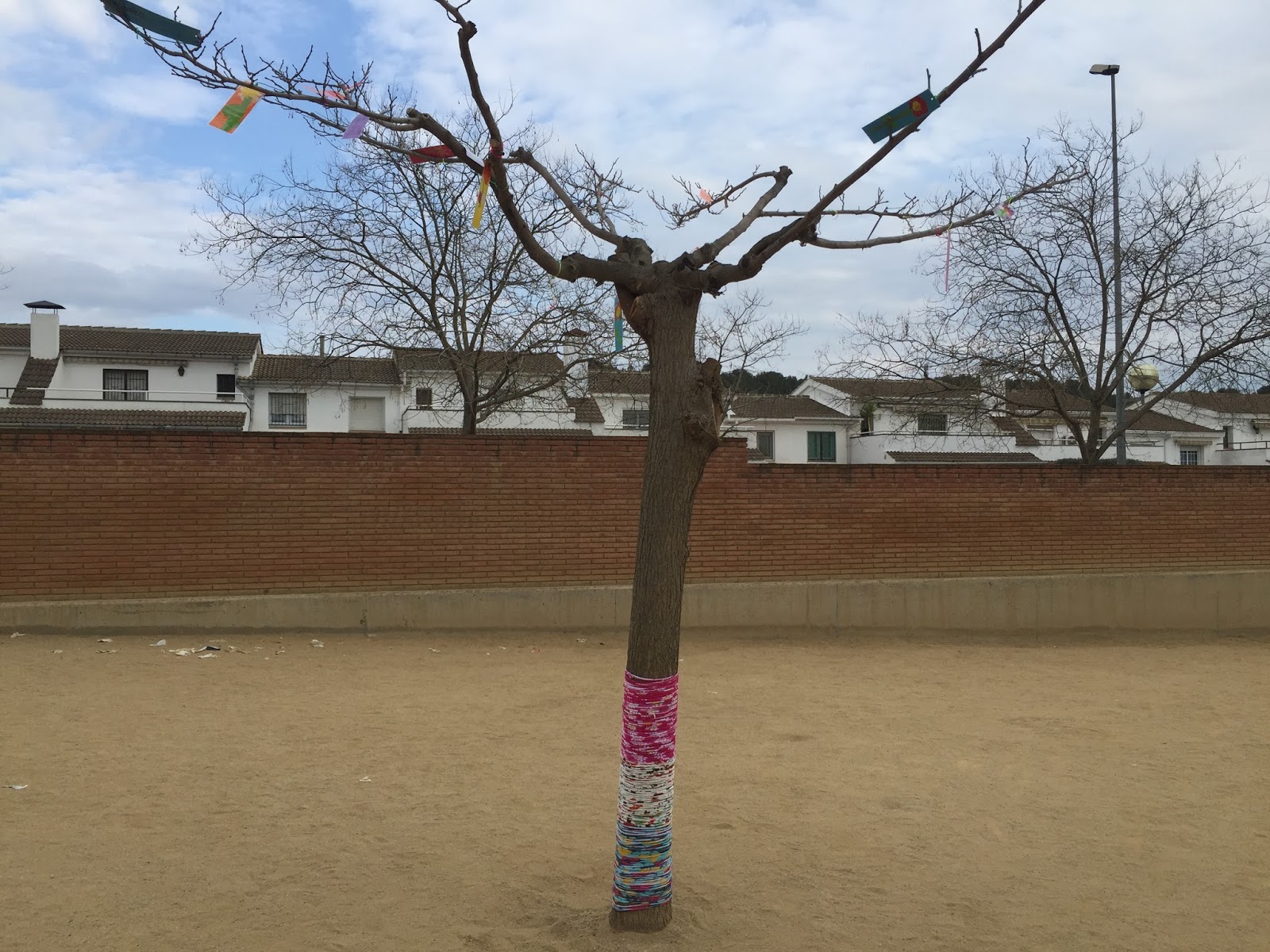 ELS NENS I NENES D’EDUCACIÓ INFANTIL (P.3, P.4 i P.5) HAN DIBUIXAT UNES FLORS XULÍSSIMES PER DECORAR ELS ARBRES DEL PATI. TAMBÉ HEM “VESTIT” ELS ARBRES PER OMPLIR EL PATI D’INFANTIL DE COLORS!!!