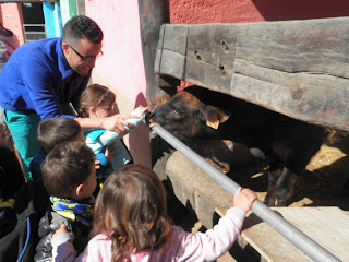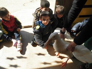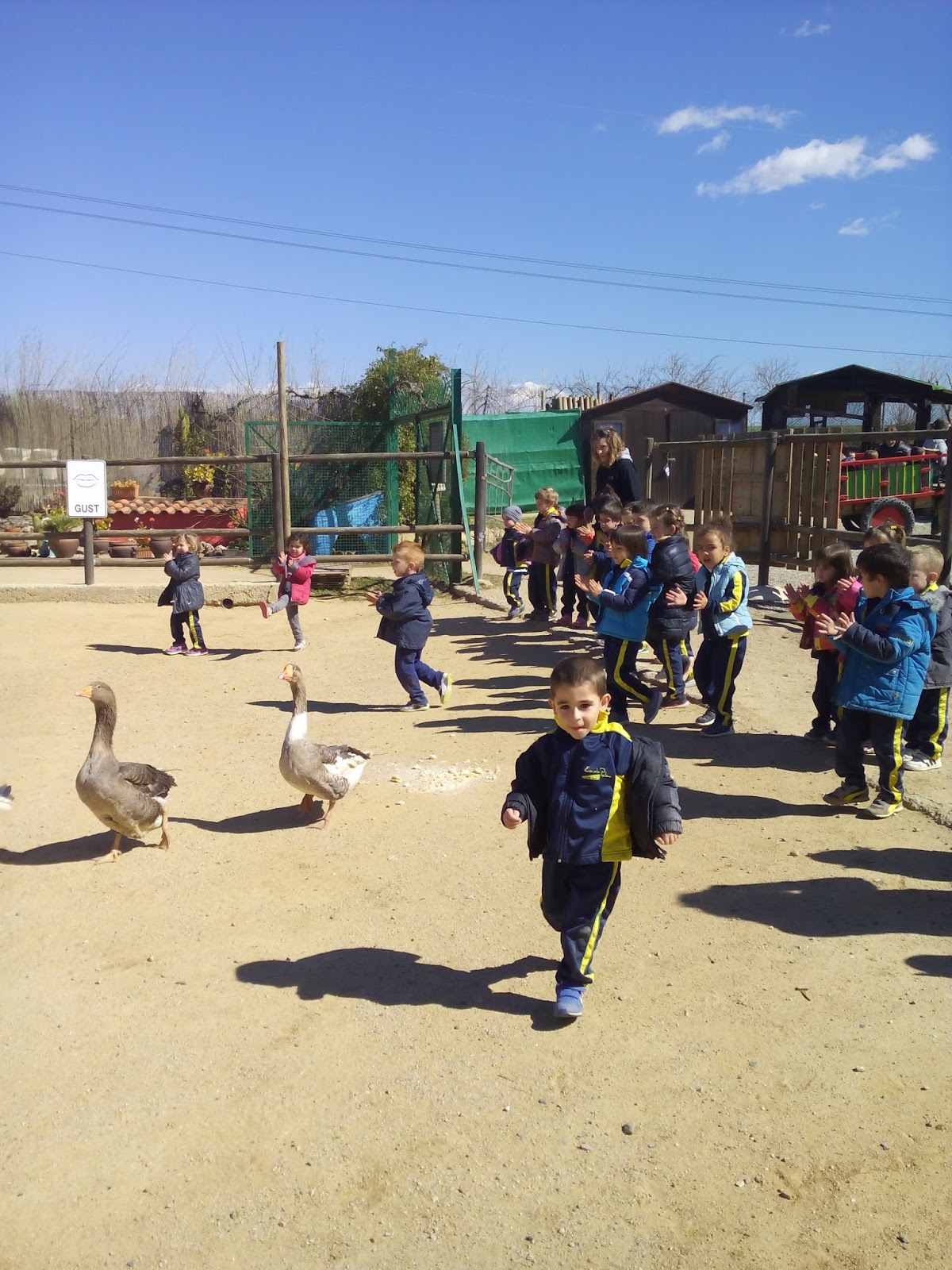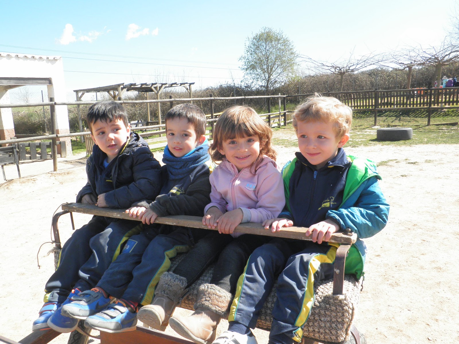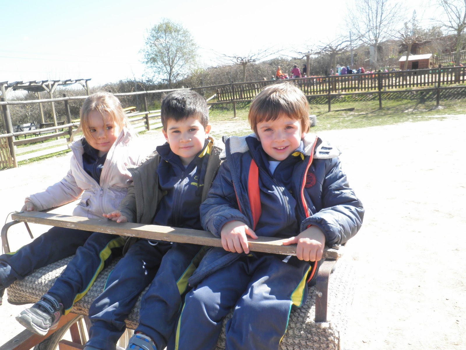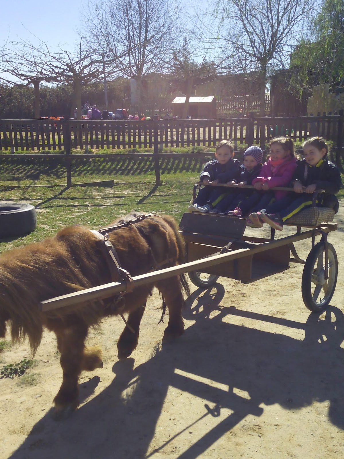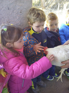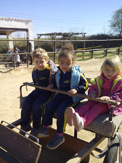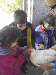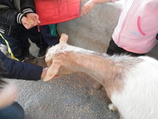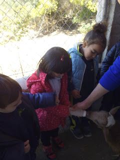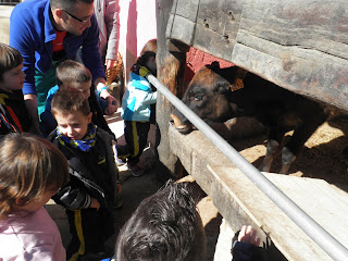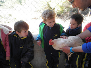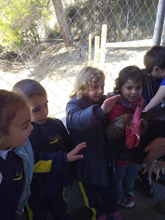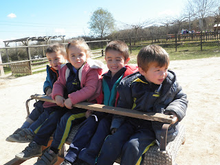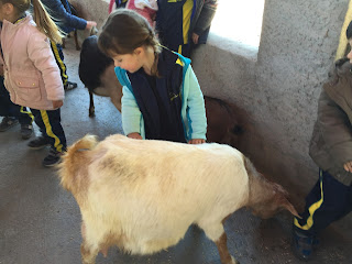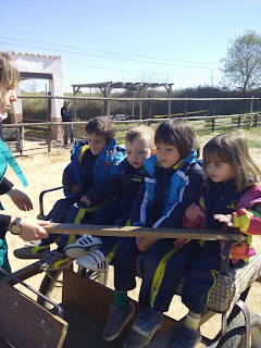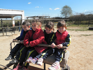 HAN VIST MOLTS ANIMALS, ( GARRINS, CABRES, UNA OVELLA, UN VEDELL, EL GALL, LA GALLINA, CAVALLS, PONIS, ÀNECS…)  ELS HAN POGUT TOCAR I FINS HI TOT DONAR MENJAR! AH! I HAN FET UN PASEIG EN EL CARRO  DEL PRINCEP (UN PONI DE COLOR MARRÓ) TAMBÉ HAN APRÈS COSES DE LA GRANJA, I HAN POSAT A PROVA ELS SENTITS AMB L’ACTIVITAT DEL TREN XU-XU.