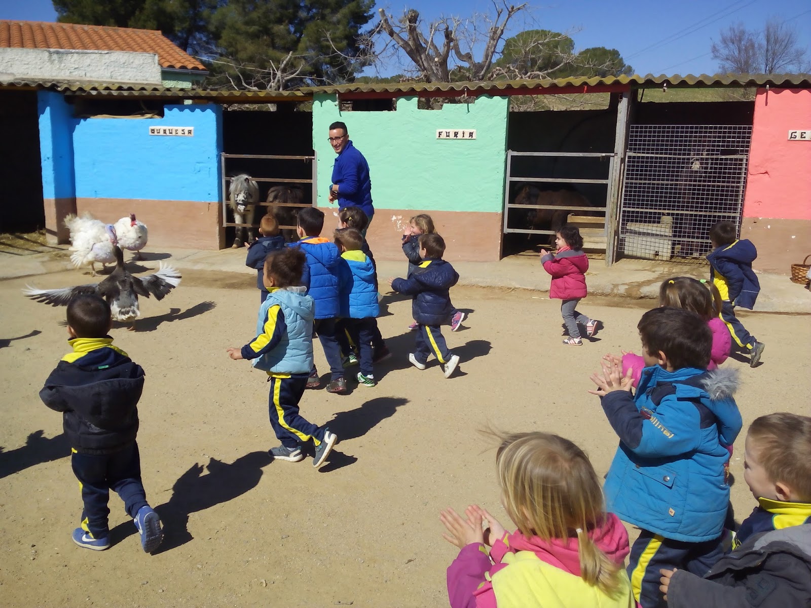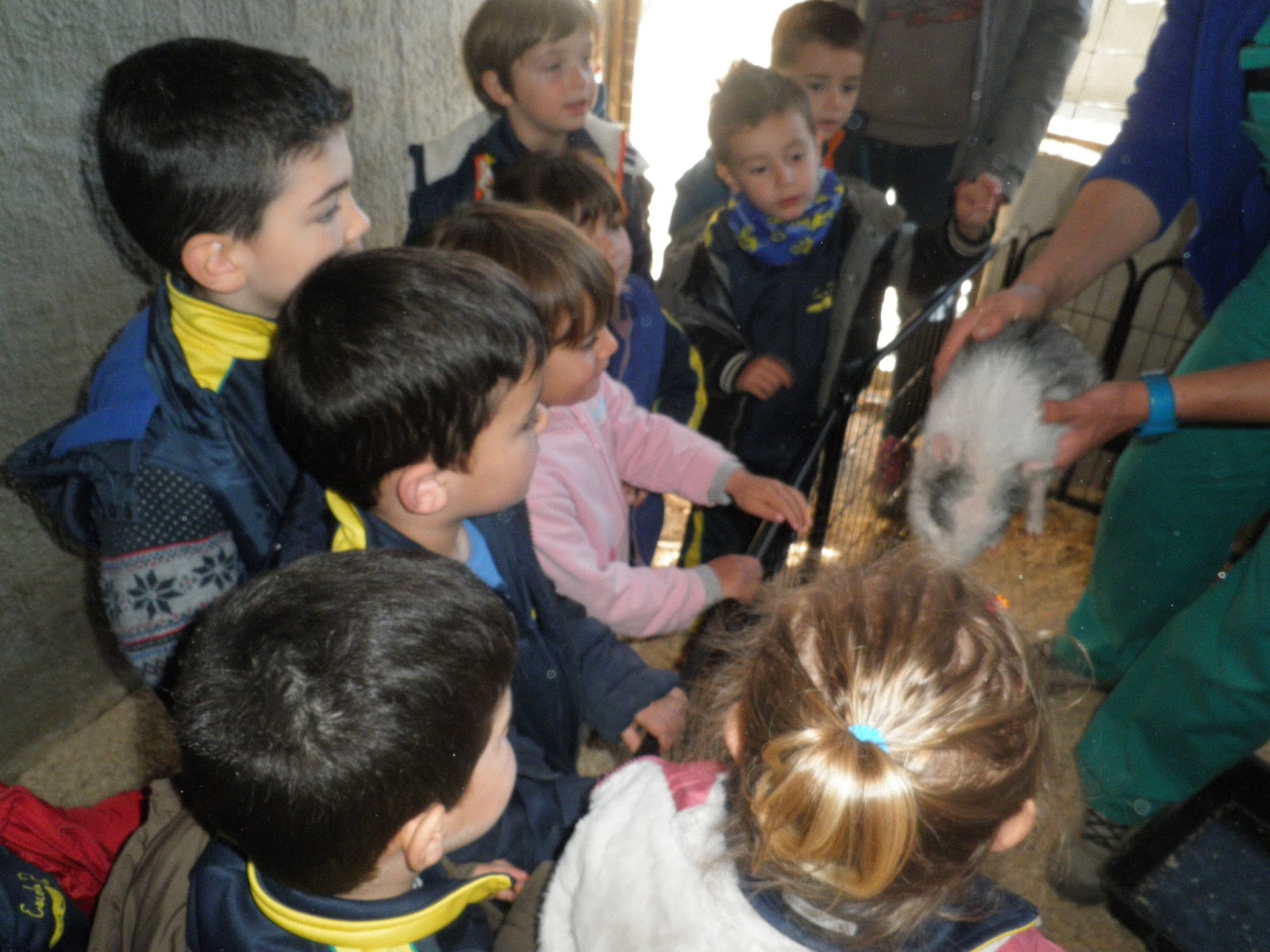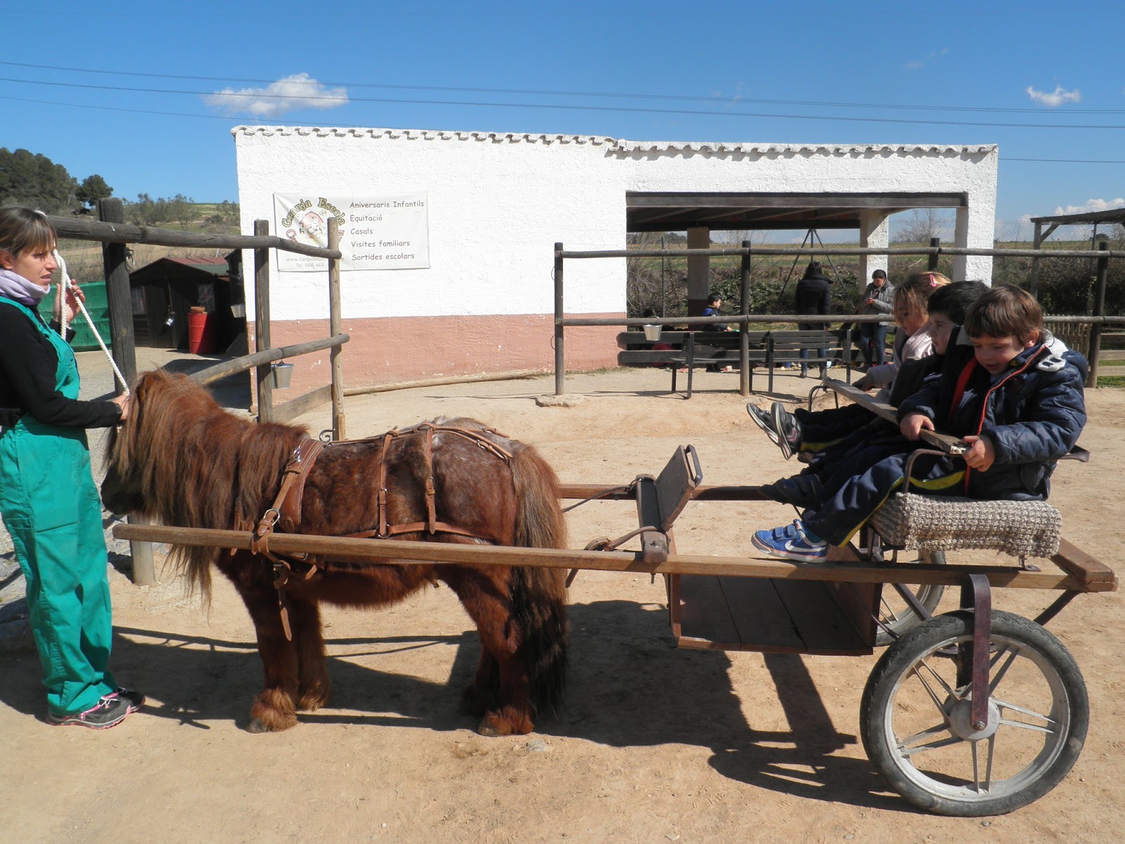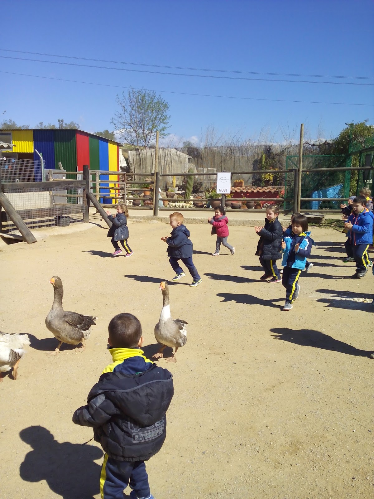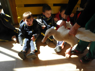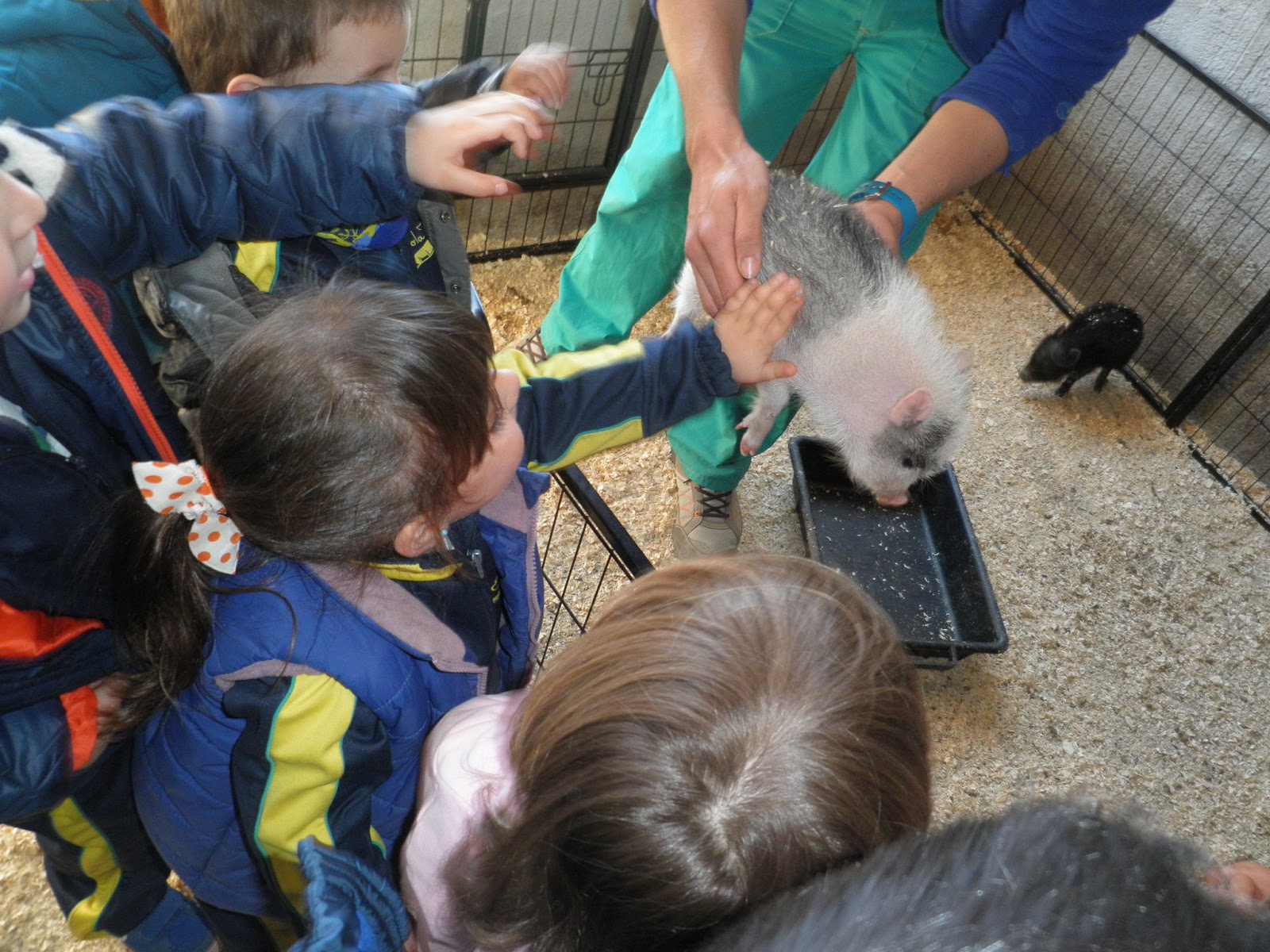 HAN VIST MOLTS ANIMALS, ( GARRINS, CABRES, UNA OVELLA, UN VEDELL, EL GALL, LA GALLINA, CAVALLS, PONIS, ÀNECS…)  ELS HAN POGUT TOCAR I FINS HI TOT DONAR MENJAR! AH! I HAN FET UN PASEIG EN EL CARRO  DEL PRINCEP (UN PONI DE COLOR MARRÓ) TAMBÉ HAN APRÈS COSES DE LA GRANJA, I HAN POSAT A PROVA ELS SENTITS AMB L’ACTIVITAT DEL TREN XU-XU.