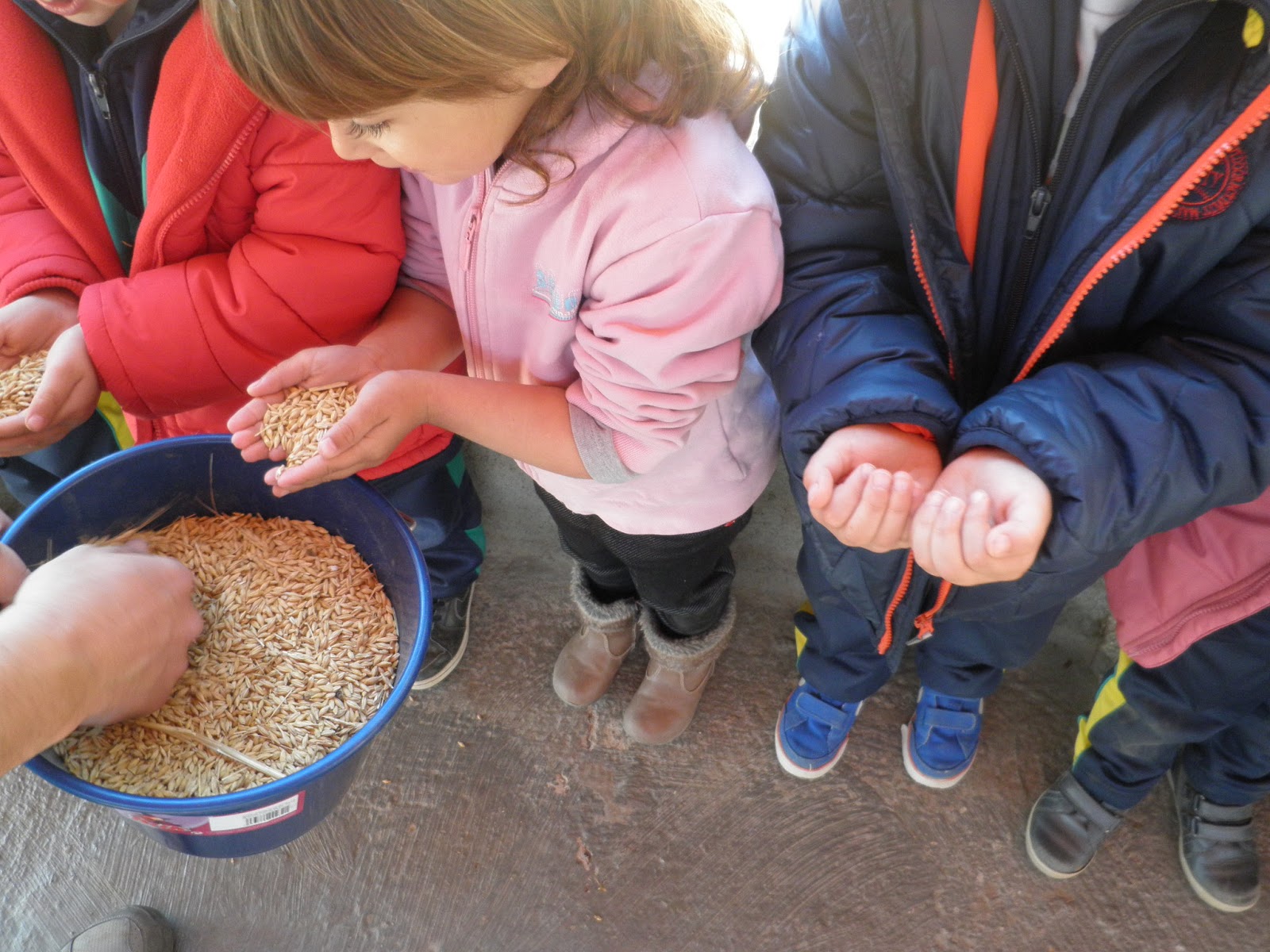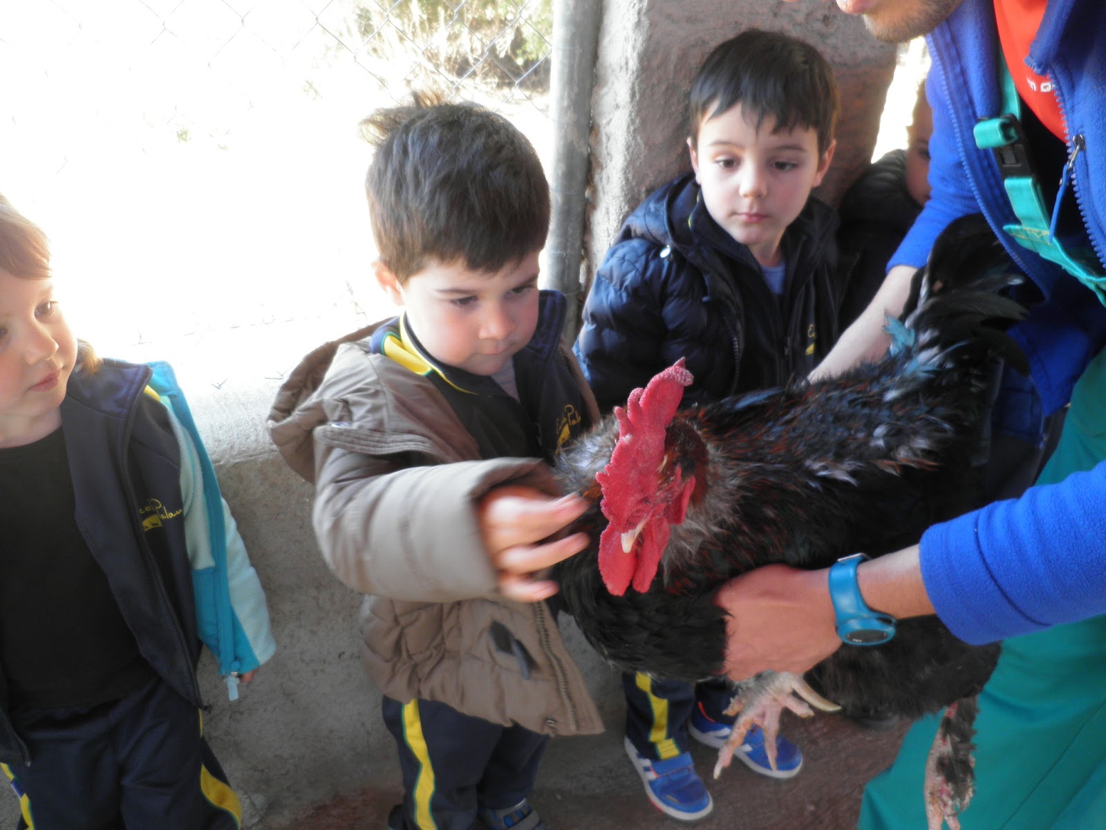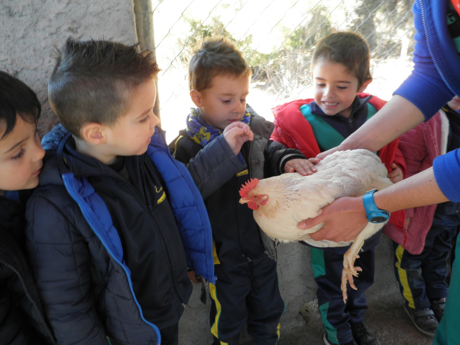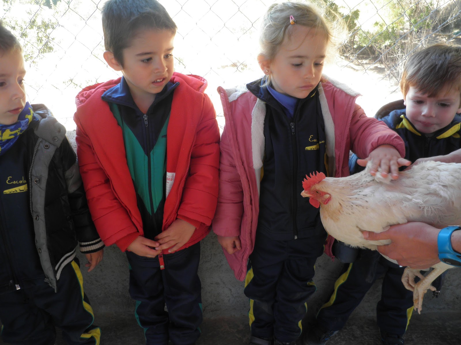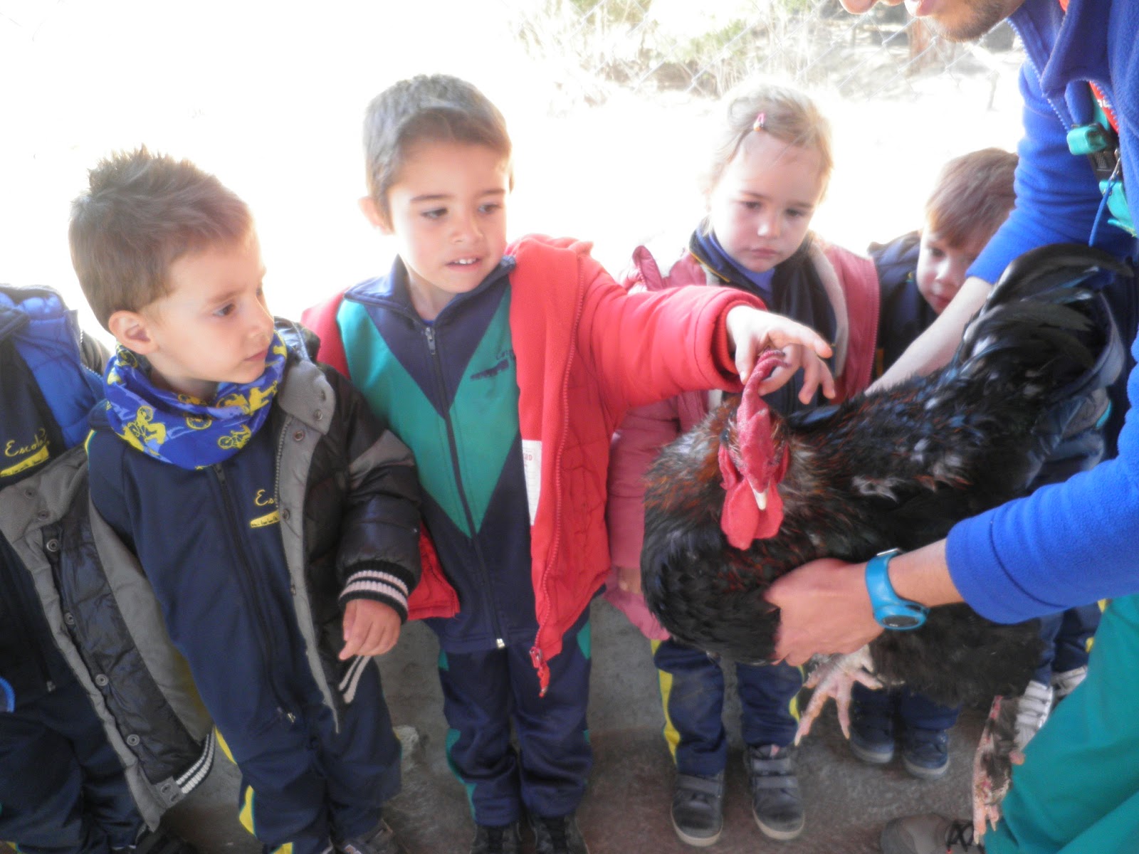 HAN VIST MOLTS ANIMALS, ( GARRINS, CABRES, UNA OVELLA, UN VEDELL, EL GALL, LA GALLINA, CAVALLS, PONIS, ÀNECS…)  ELS HAN POGUT TOCAR I FINS HI TOT DONAR MENJAR! AH! I HAN FET UN PASEIG EN EL CARRO  DEL PRINCEP (UN PONI DE COLOR MARRÓ) TAMBÉ HAN APRÈS COSES DE LA GRANJA, I HAN POSAT A PROVA ELS SENTITS AMB L’ACTIVITAT DEL TREN XU-XU.