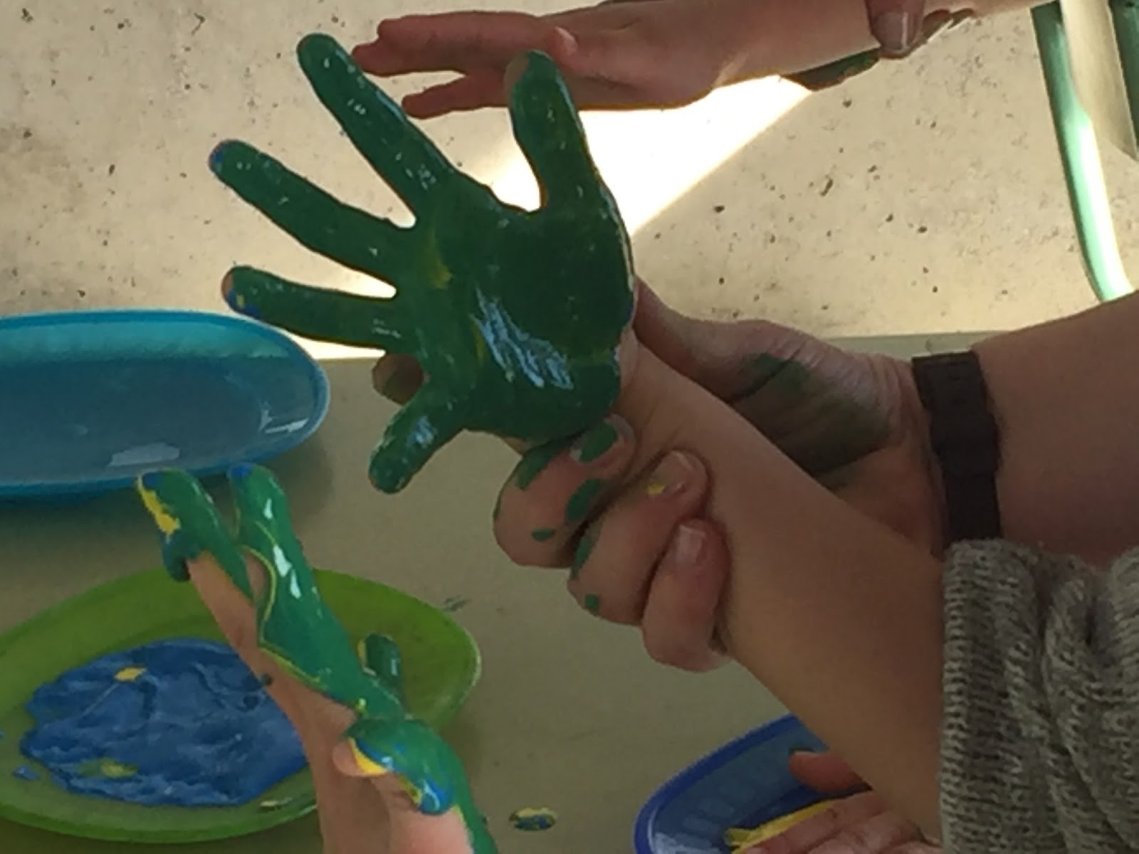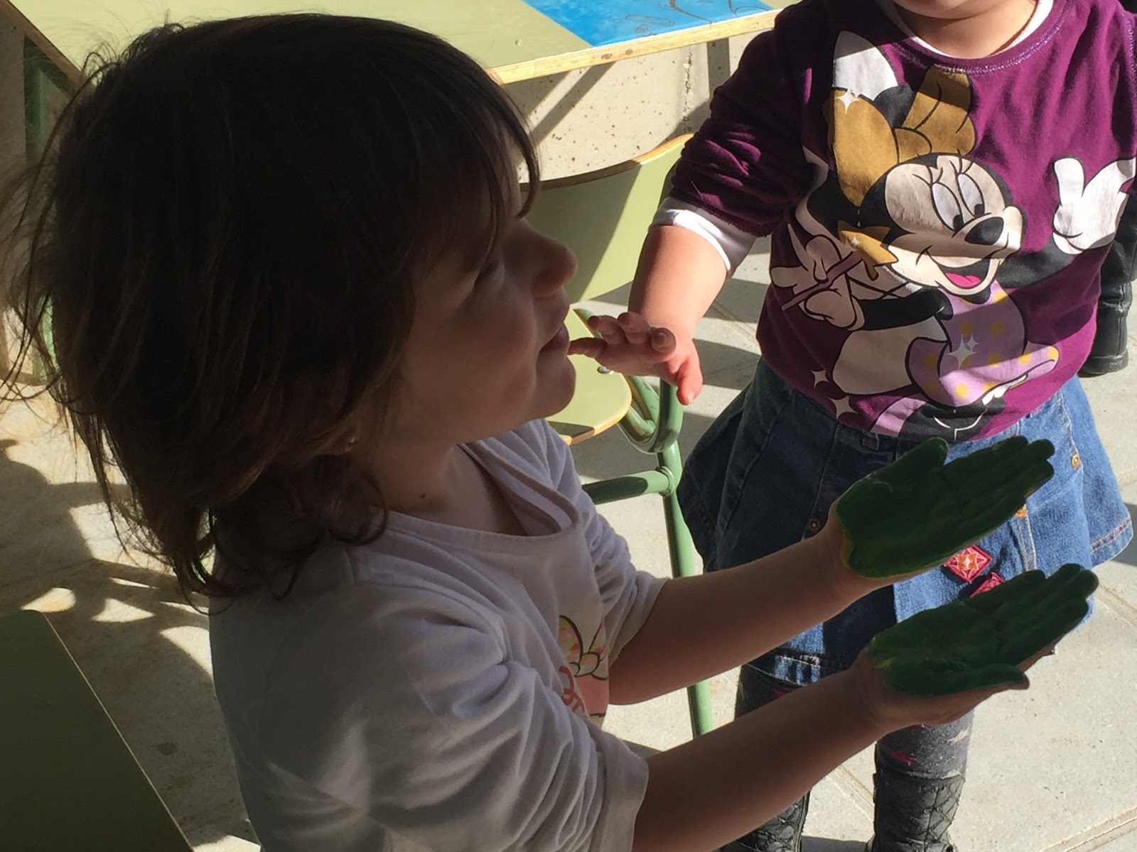 PERÒ DESPRÈS DE FER LA BARREJA, AMB LES MANS, HEM DESCOBERT QUE SURT EL COLOR VERD!!!