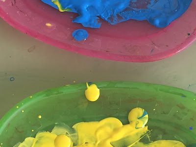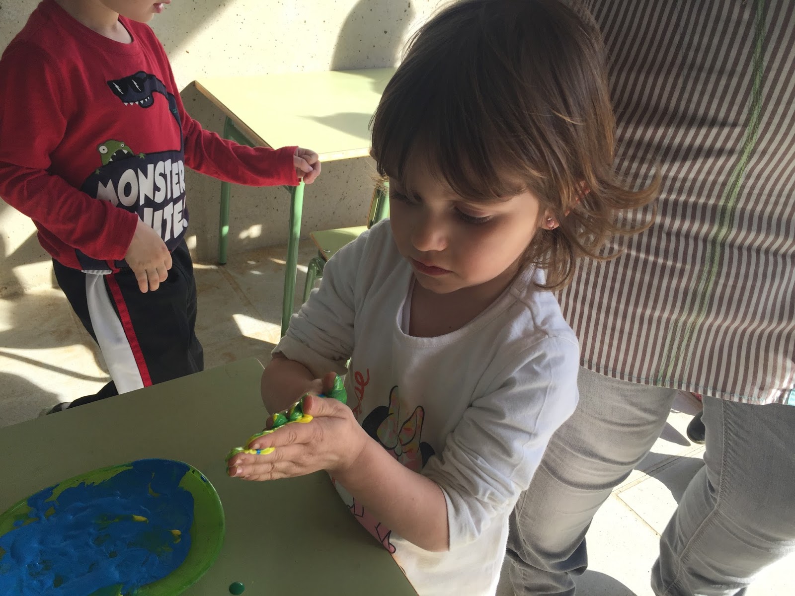 ELS NENS I NENES DE P-3 A i B HAN EXPERIMENTAT AMB ELS COLORS. HAN DESCOBERT QUE PASSA QUAN AJUNTEM EL COLOR GROC AMB EL COLOR BLAU. PRIMER HAN FET HIPÒTESIS SOBRE QUIN COLOR SORTIRÀ HAN DIT DE TOT: BLAU, VERD, ROSA, GROC, TARONJA….