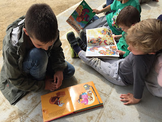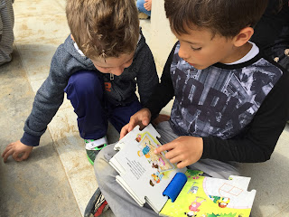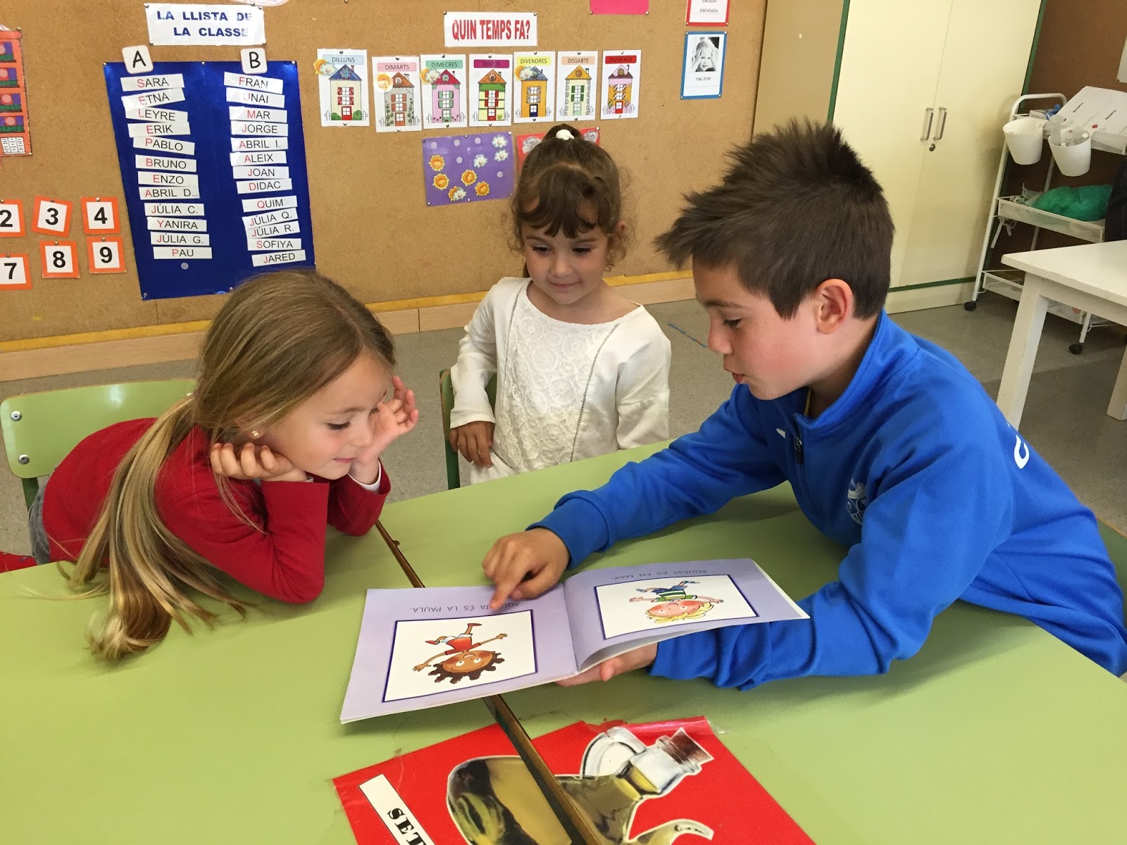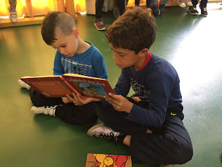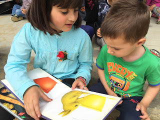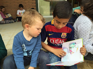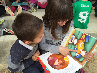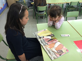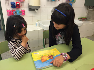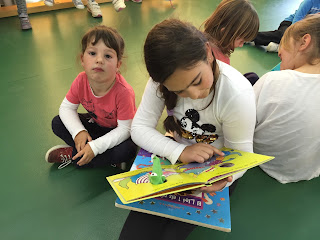 A LA TARDA HEM FET APADRINAMENT LECTOR. NENS I NENES DE 3r. HAN VINGUT A P-3 PER EXPLICAR UNS CONTES XULÍSSIMS. ELS ALUMNES DE 4t.a  HAN ANAT A P-4a i P-5a AMB UNS CONTES BEN BONICS PER EXPLICAR ALS PETITS. P-4b i P-5b HAN TINGUT LA VISITA DELS ALUMNES DE 4t b QUE TAMBÉ ELS HI HAN EXPLICAT UNS CONTES FANTÀSTICS…