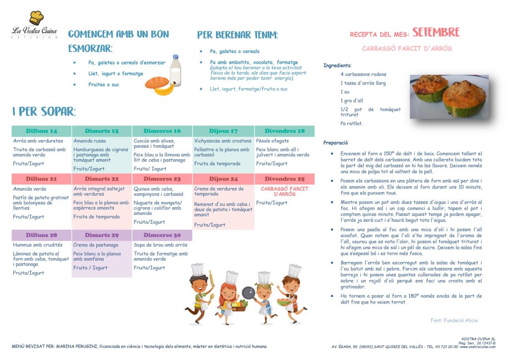 Aquest any és un curs especial, i per aquest motiu us facilitem el telèfon de Mari la coordinadora de “La vostra cuina” ( 670 39 62 72) per tal que previ a l’inici del curs pugueu fer les consultes, informar dels dies que els nens es quedaran i aixi evitar cues els primers dies i també per poder aclarir si tenen algun deute, ja que en aquest cas i fins no es resolgui no podran venir al menjador.