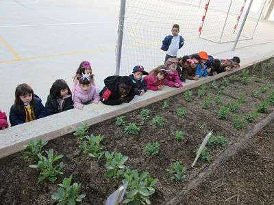 Aprofitem per observar com creixen les plantes i queden contents de veure el creixement de les faves, especialment.