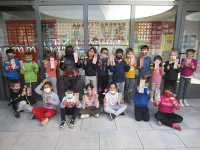 Els dies abans de Sant Jordi i aquell dia, el 23 d’abril. Els alumnes de 1r i 2n van fer un punt de llibre (fent servir paper de diari, llana…) i una rosa (fent servir un llapis verd i una blonda de magdalenes).