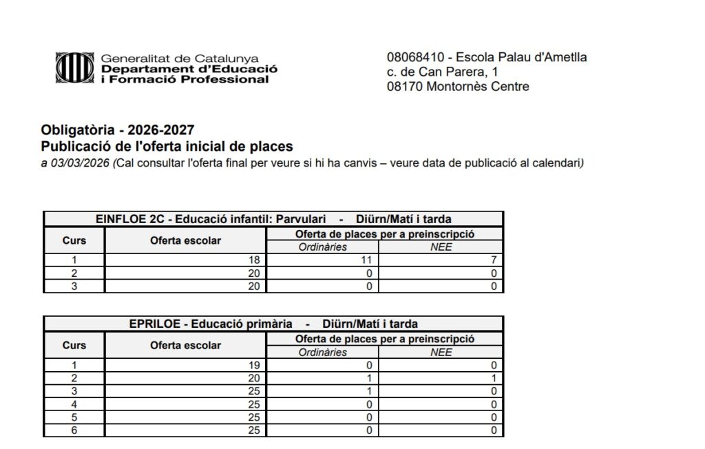 OFERTA INICIAL DE PLACES CURS 26-27