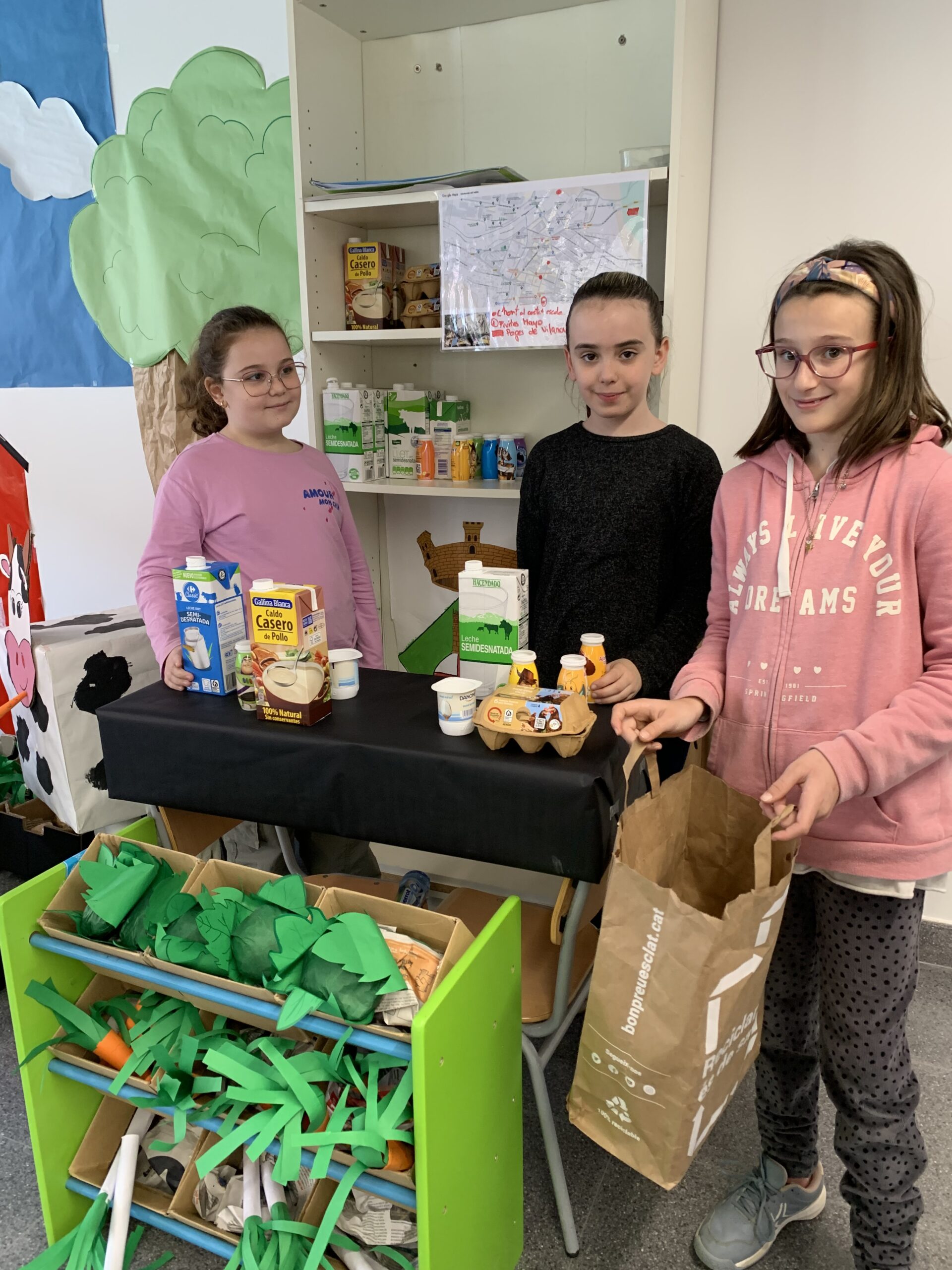 A banda, els infants de cicle superior han participat en un projecte en comú amb altres menjadors escolars amb la finalitat de sensibilitzar a l’alumnat sobre una altra manera de consumir, més conscient amb qui produeix, amb el medi ambient i amb la salut. Hem fet un estudi de comerç de la zona de Montornès per saber on podem trobar producte de proximitat, i a més, una representació sobre la nostra pròpia botiga per donar sentit a qui, planta, qui cull i qui comercialitza.