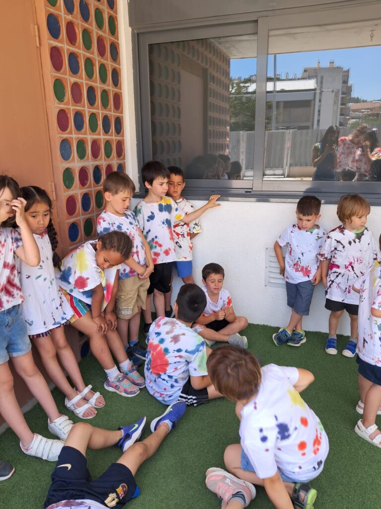 Els cursos d’infantil i 1r han experimentat la transformació d’unes samarretes amb l’estampació “tie dye”, una forma de donar una segona vida a la roba que tenim oblidada a l’armari amb la idea de reduir, reutilitzar i reciclar.