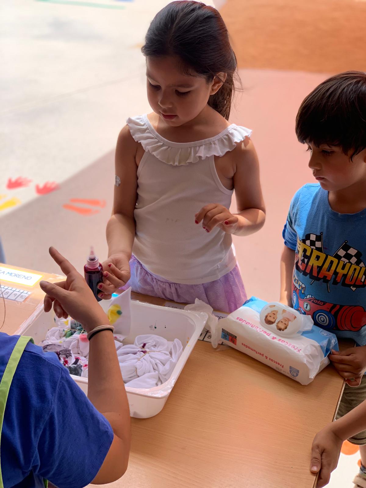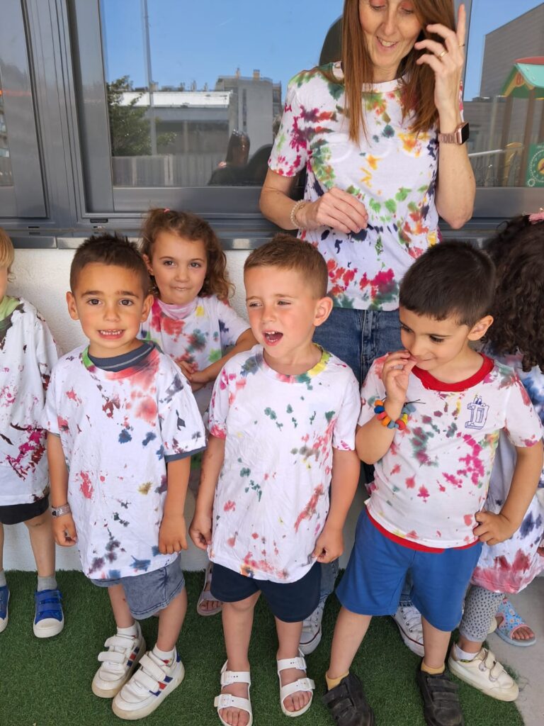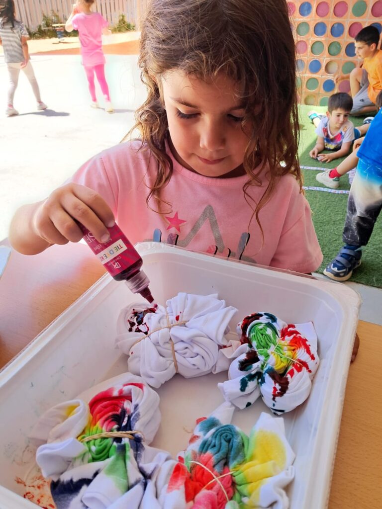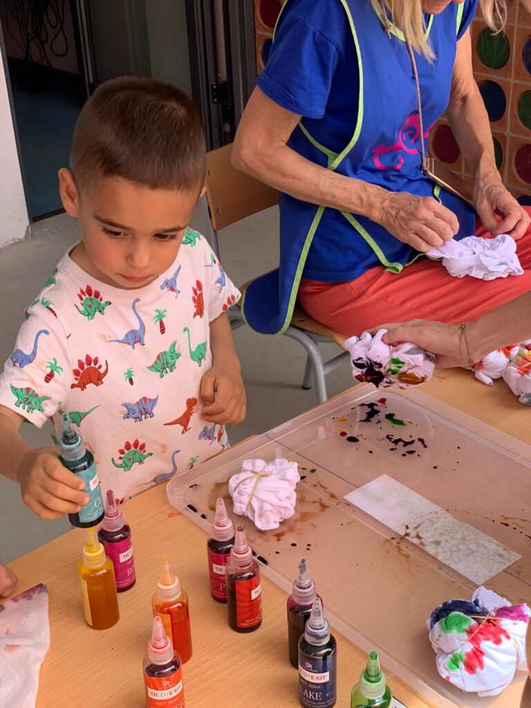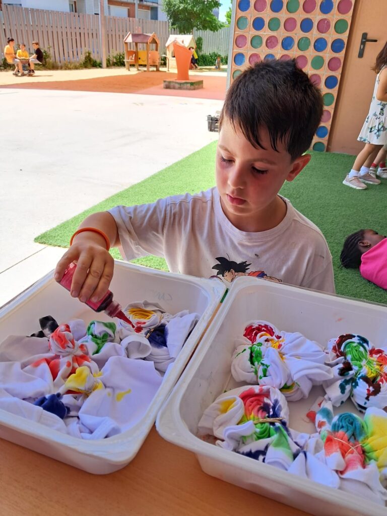 Els cursos d’infantil i 1r han experimentat la transformació d’unes samarretes amb l’estampació “tie dye”, una forma de donar una segona vida a la roba que tenim oblidada a l’armari amb la idea de reduir, reutilitzar i reciclar.