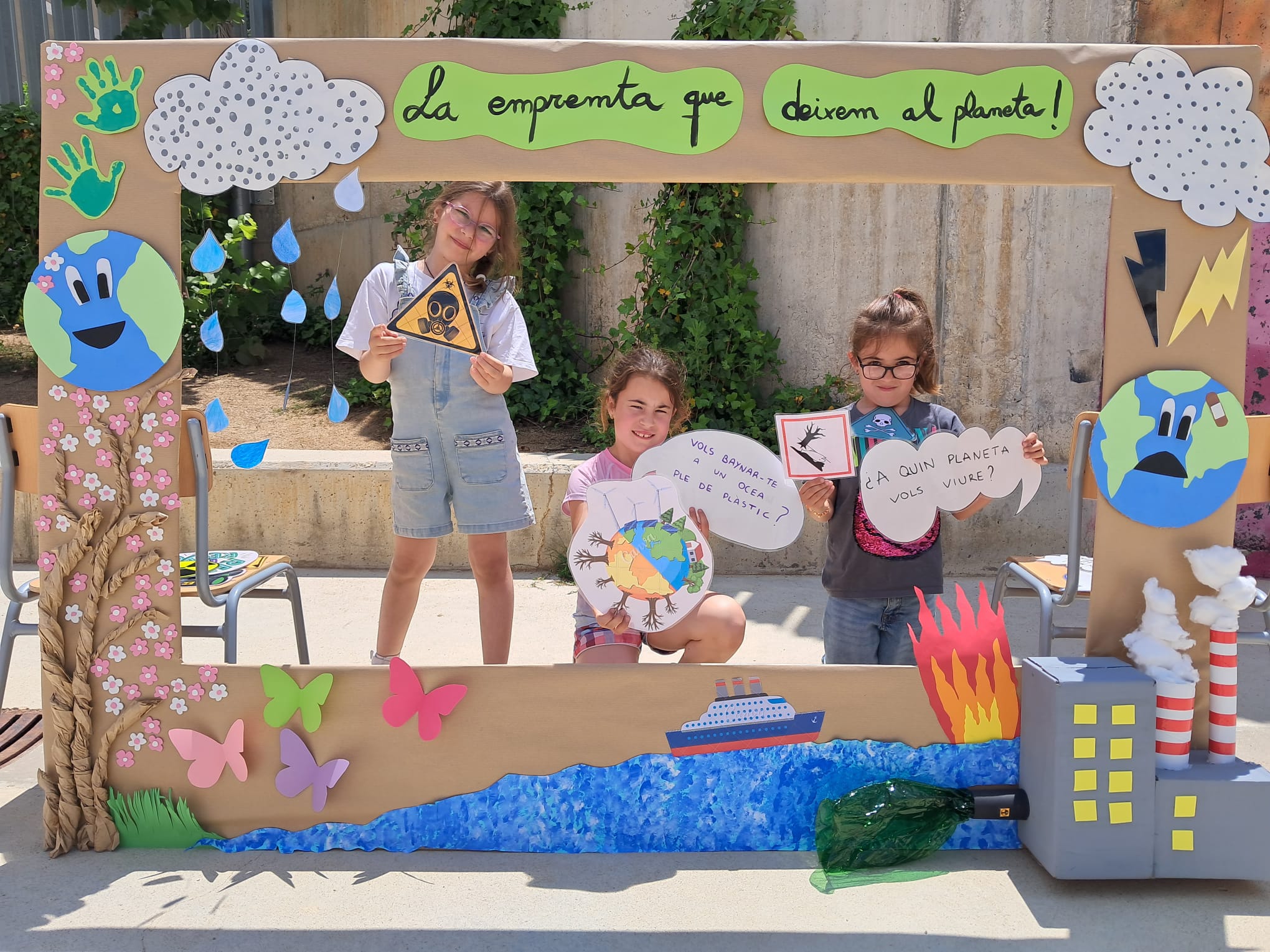 Aquests últims dies de menjador hem aprofitat per fer la cloenda del projecte final, els nens i nenes han treballat sobre un tema molt present durant tots aquests mesos, la cura del medi ambient a través d’un mural photocall anomenat “L’Empremta que deixem al planeta” han donat visibilitat a una frase que juntament amb unes vinyetes ens fa reflexionar sobre quin és el planeta on volem viure.