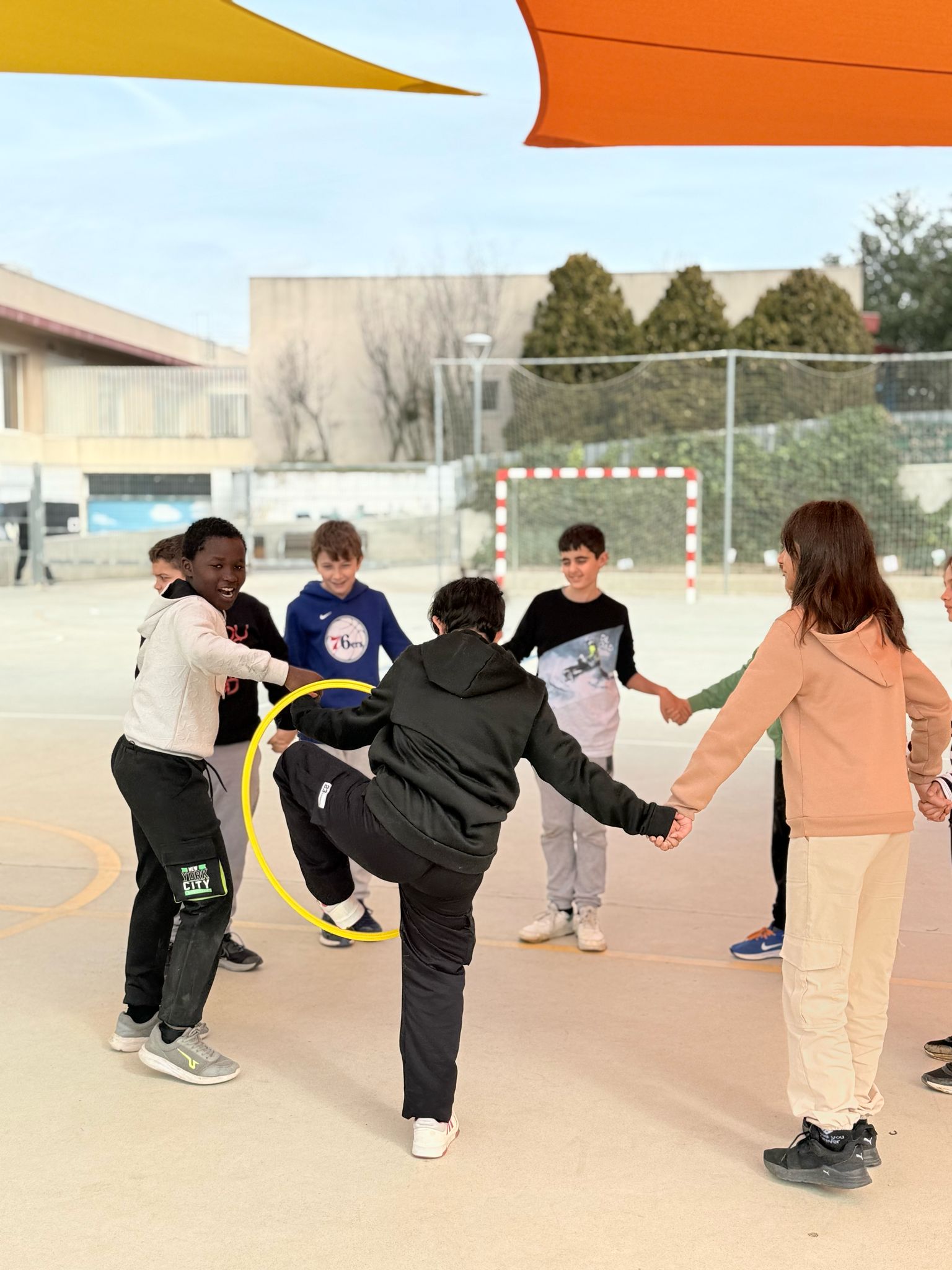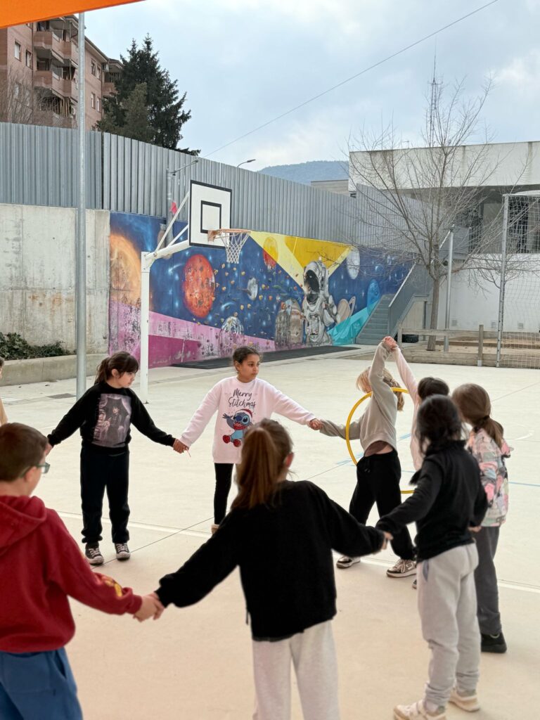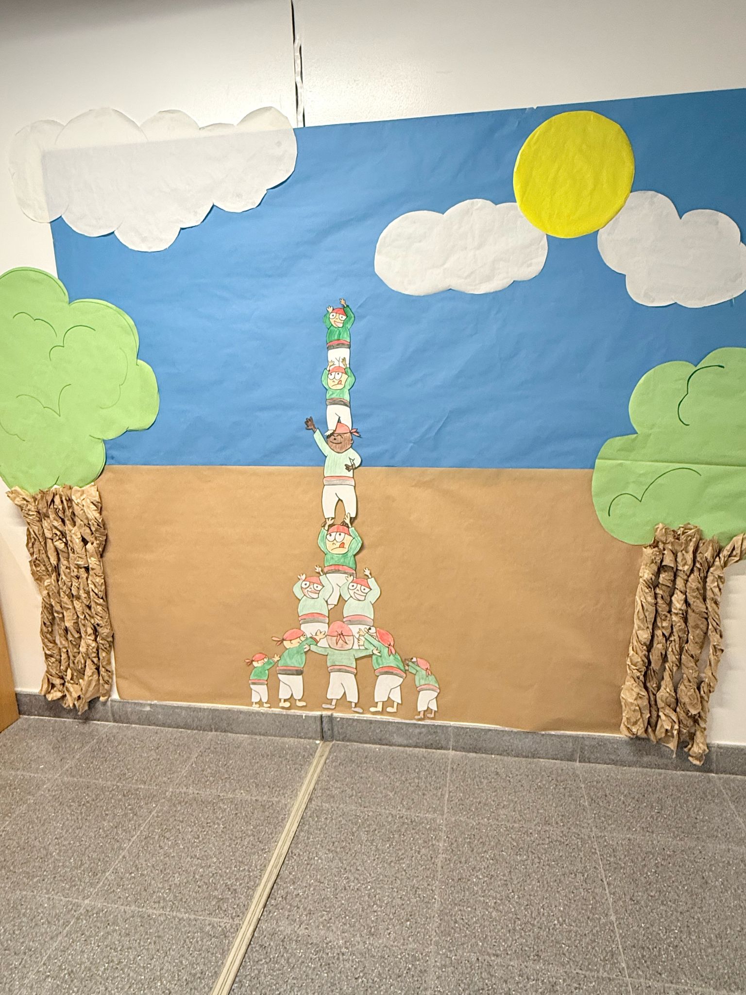 Amb els nens i nenes que fan ús del servei de menjador hem fet jocs de pati cooperatius, tallers artístics compartits, dinàmiques grupals i la creació d’un mural on els protagonistes son els castellers del Palau d’Ametlla, un exemple d’unió. Una tradició que posa èmfasi en el treball en equip i que ens fa entendre que cada persona treballa pel col·lectiu amb un objectiu comú.