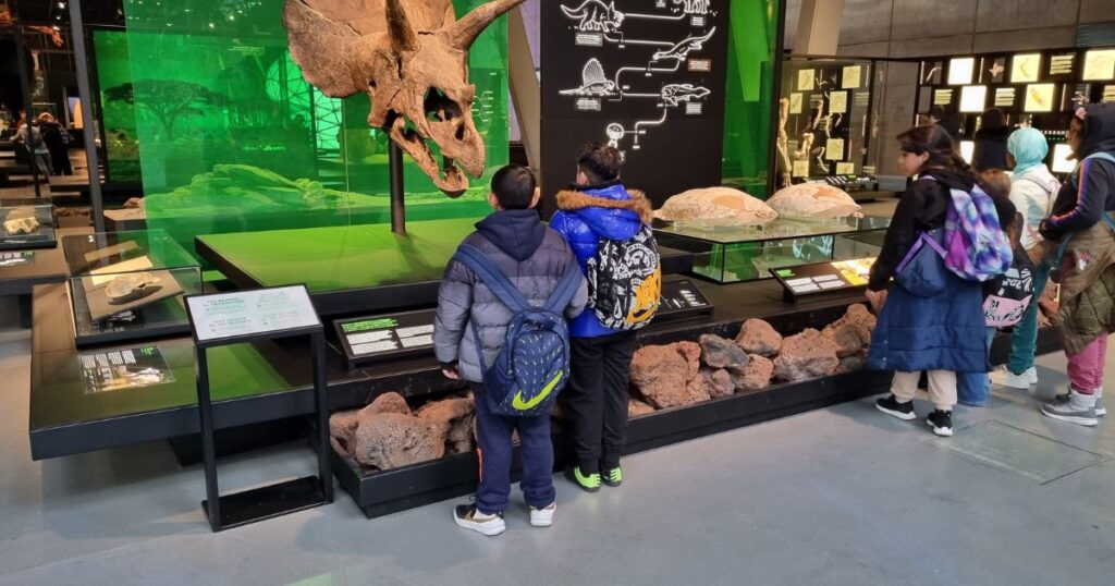 Aquest passat dimecres els i les alumnes de 5è i 6è van fer una sortida al museu de la ciència CosmoCaixa. Va ser un dia molt emocionant i ple de nous aprenentatges. Van poder veure una exposició de dinosaures de la Patagònia, aprendre coses sobre l’univers, saber més sobre les fonts d’energia i fins i tot, fer un petit viatge per la prehistòria.