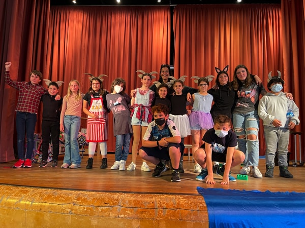 Els i les alumnes de 4t i 5è han preparat l’obra en anglès: The seven little goats. L’alumnat de 6è s’ha encarregats dels aspectes tècnics, so, decorats, tickets, programa… Han fet una bona feina d’equip.