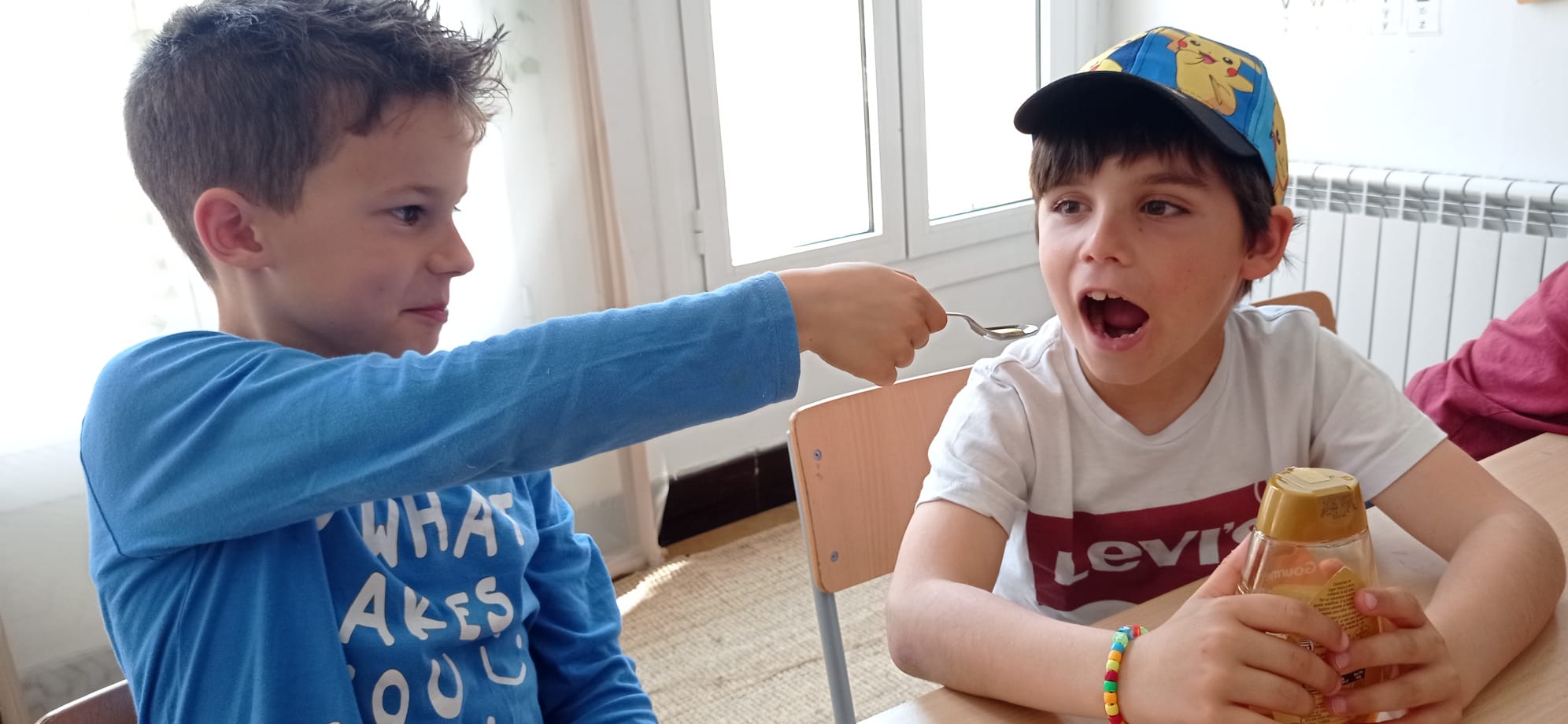 “I touch with my hands, I see with my eyes, I taste with my tongue,I smell with my nose and I listen with my ears”. En cada racó el protagonista era un dels sentits i havíem de demanar quin sentit volíem fer en anglès.