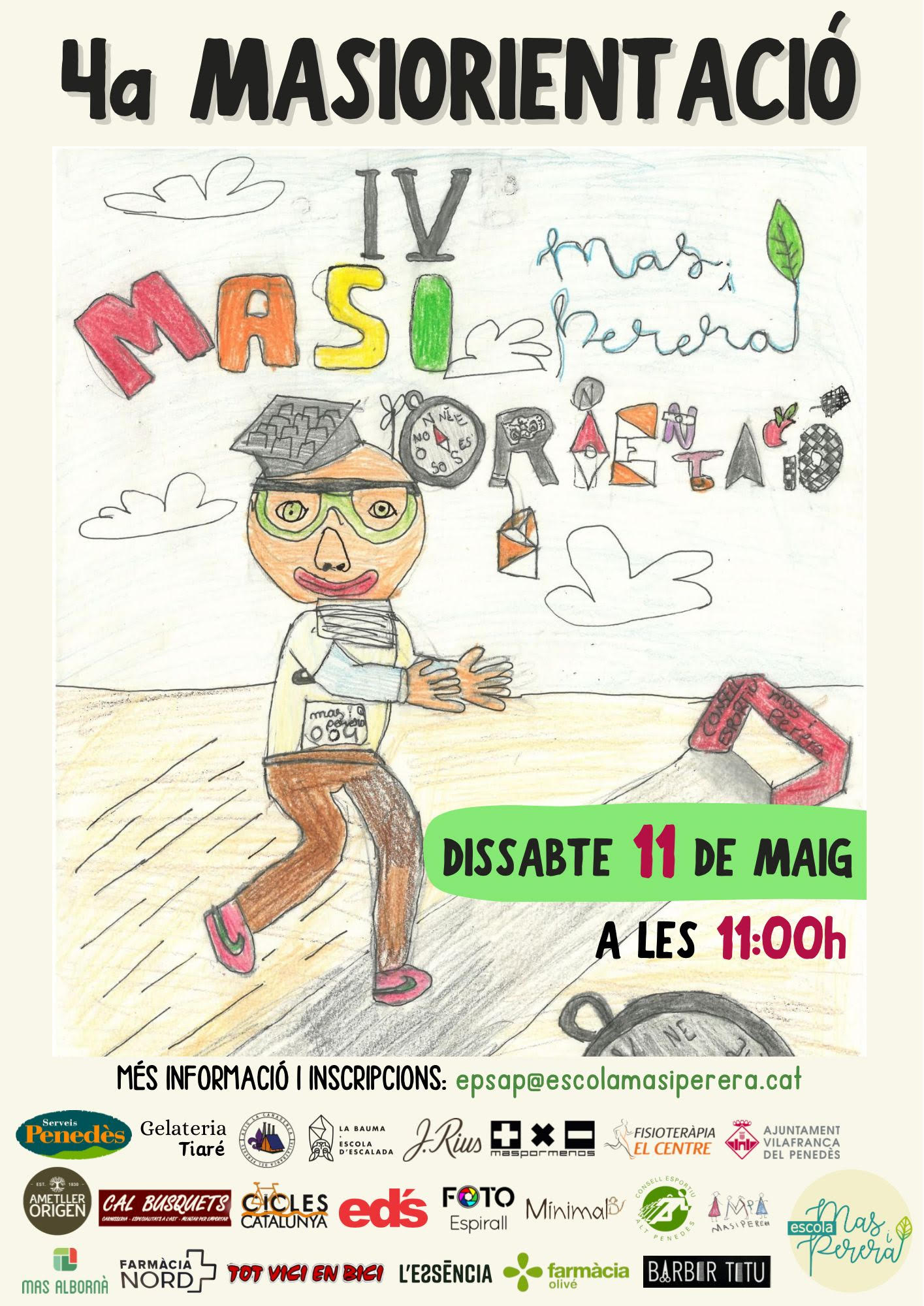 El proper dissabte 11 de maig tindrà lloc la 4a Masiorientació a l’Escola Mas i Perera de Vilafranca del Penedès. És una cursa d’orientació familiar, no competitiva, de caràcter lúdic i oberta a tothom.